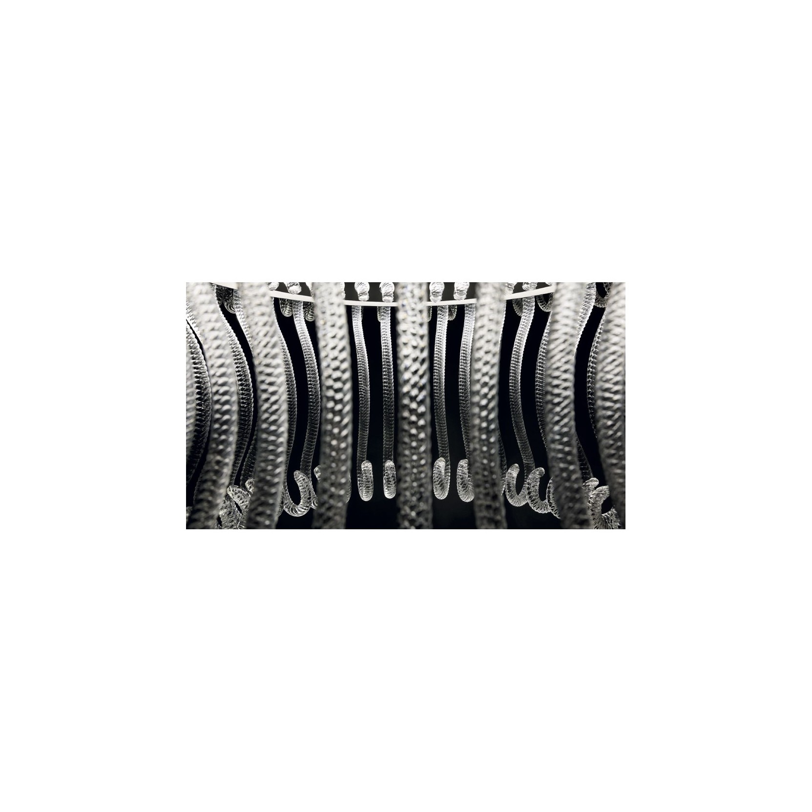 Crown is a collection of suspended lamps designed by the famous Barovier & Toso brand with painted metal frame and crystal elements. This collection is characterized by the decorative elements of full glass, the pastoral, characteristic of the Venetian chandelier, which has become an icon in its category: Taif. Crown is available in three different configurations (one, two or three-tiers) and consists of single or multiple carefully-painted metal rings with openings that large pastorals are fitted into. A long continuous series of dimmable LED lights runs along the rings and illuminates the top of each pastoral and in turn lights up the entire pastoral due to the refraction caused by surface of the glass. Light source: Model. 7334 Ø. 60 H. 90 cm, 46 W, Strips LED; Model. 7335 Ø. 88 H. 100 cm, 73 W, Strips LED; Model. 7336 Ø. 118 H. 110 cm, 98 W, Strips LED; Model. 7337 Ø. 88 H. 130 cm, 46 + 73 W, Strips LED; Model. 7338 Ø. 118 H. 140 cm, 73 None 98W, Strips LED; Model. 7339 Ø. 118 H. 180 cm, 46 None 73 None 98 W, Strips LED.