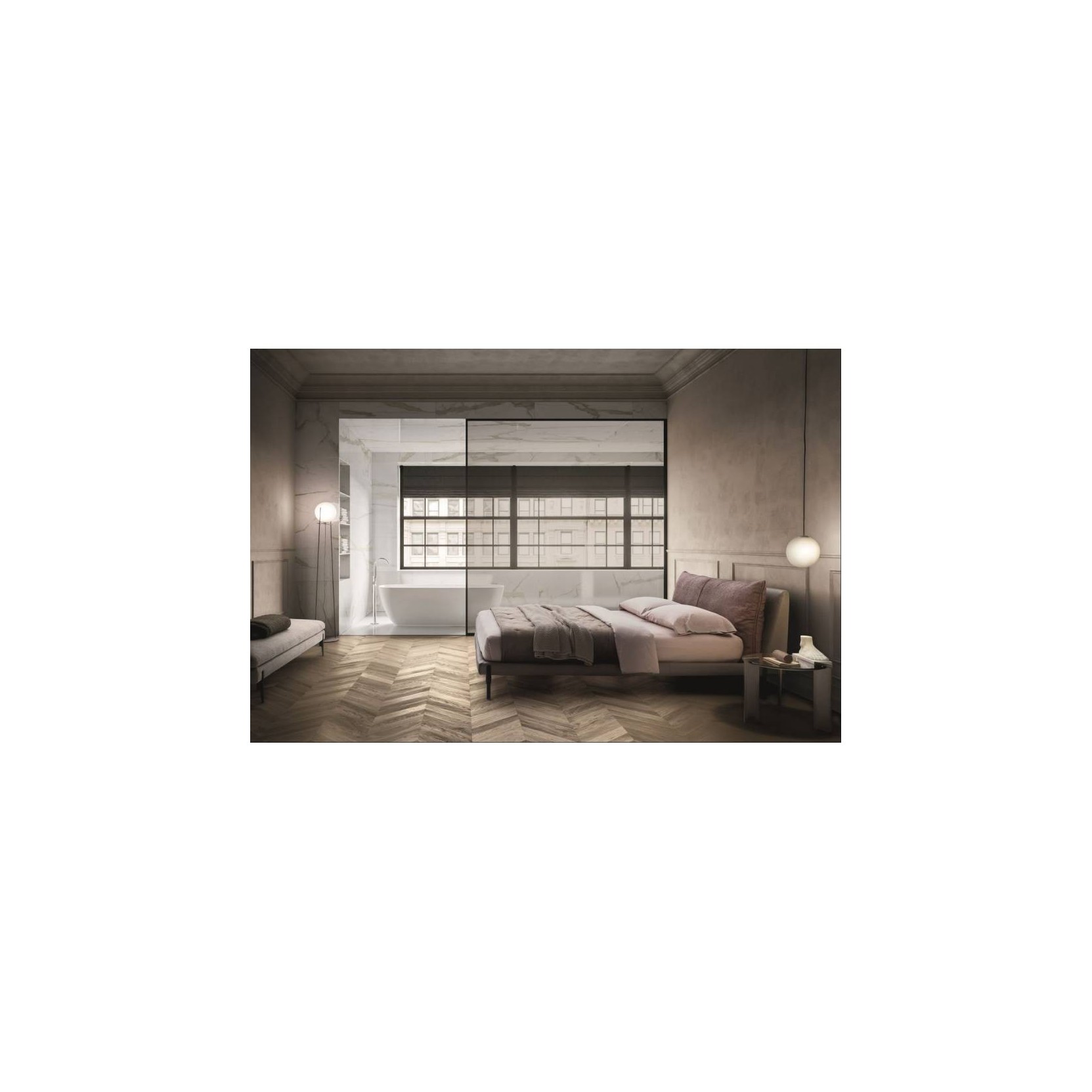 The Kim bed picks up the distinctive, elegant lines of the sofa that goes by the same name. These are particularly evident on the headboard and bed frame. The harmonious structure, covered with fabric, leather or mix upholstery, can be customised by one of two exclusive feet, available with or without an outer prop.