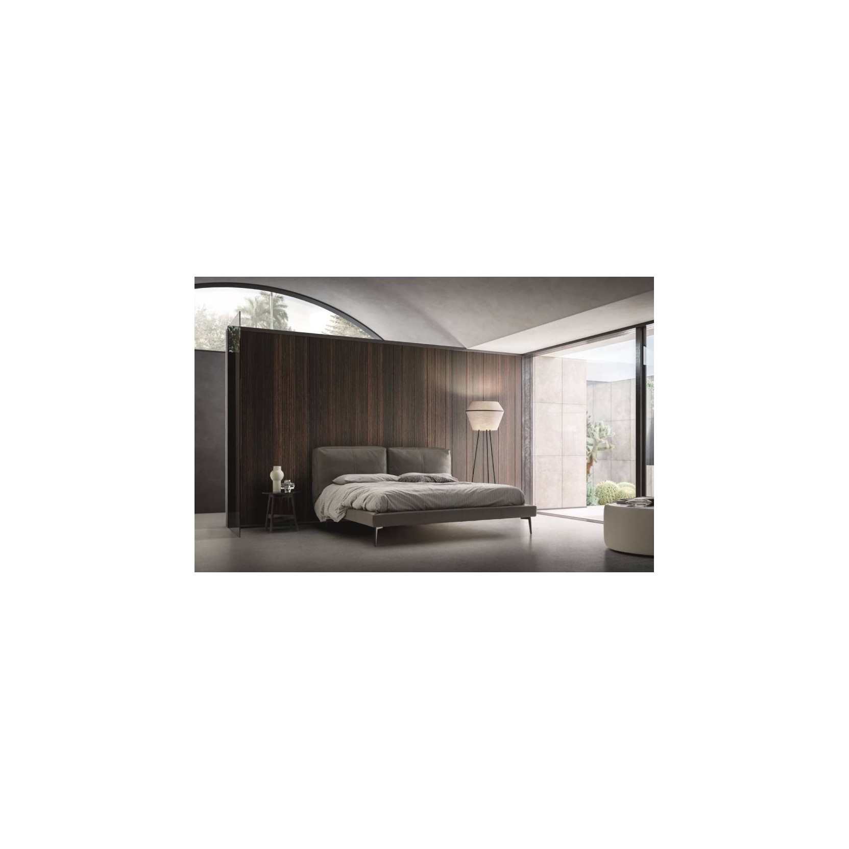 The charm of a top-design bed combines with the desire for a strictly personal world. Sound offers a balance of being fashionable and pursuing a familiar dimension. In this way, its fully upholstered headboard blends harmoniously with its more streamline structure, supported by metal feet in four finishes: chrome, white, grey and brown.