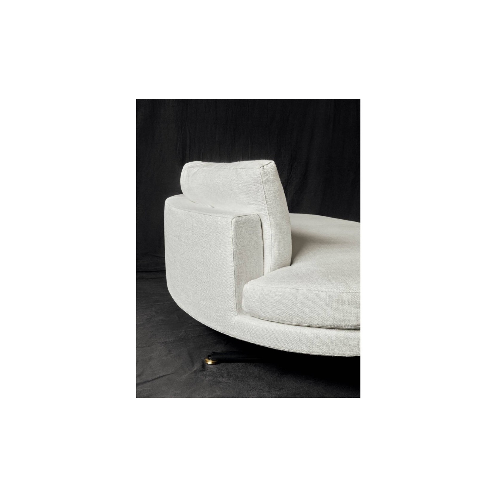 The particular of the armrest and back cushions set between structure and seat, and the sculptural foot, classic and hi-tech at the same time, distinguish the fixed version, declined in linear and elliptical forms to outline the domestic and contract spaces.