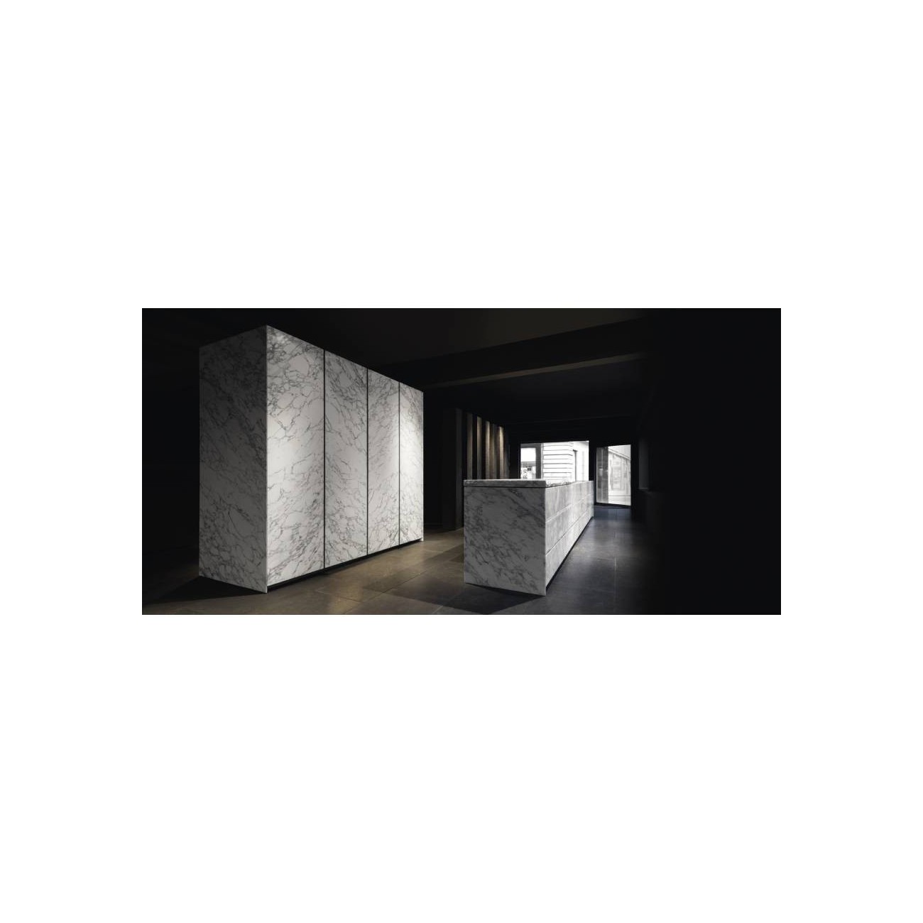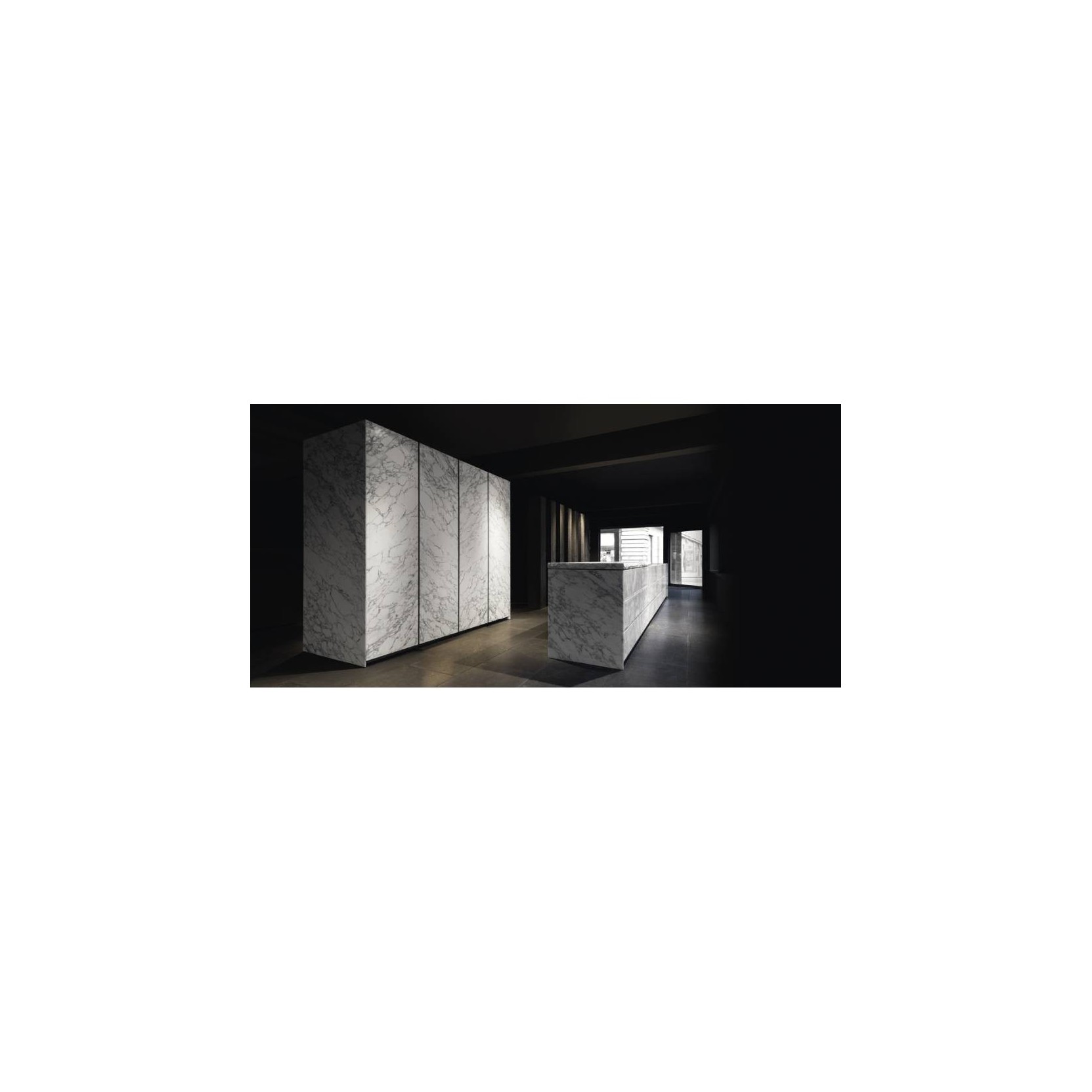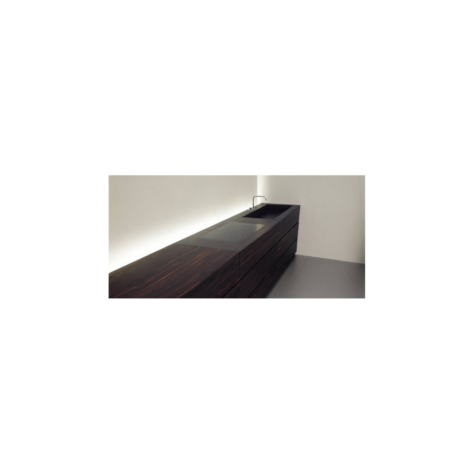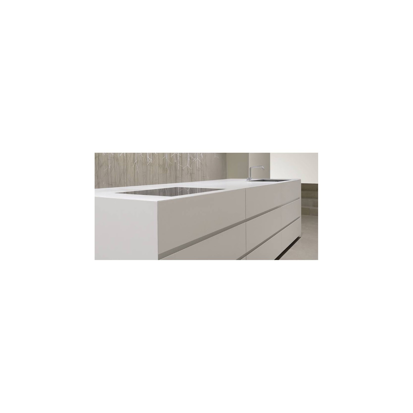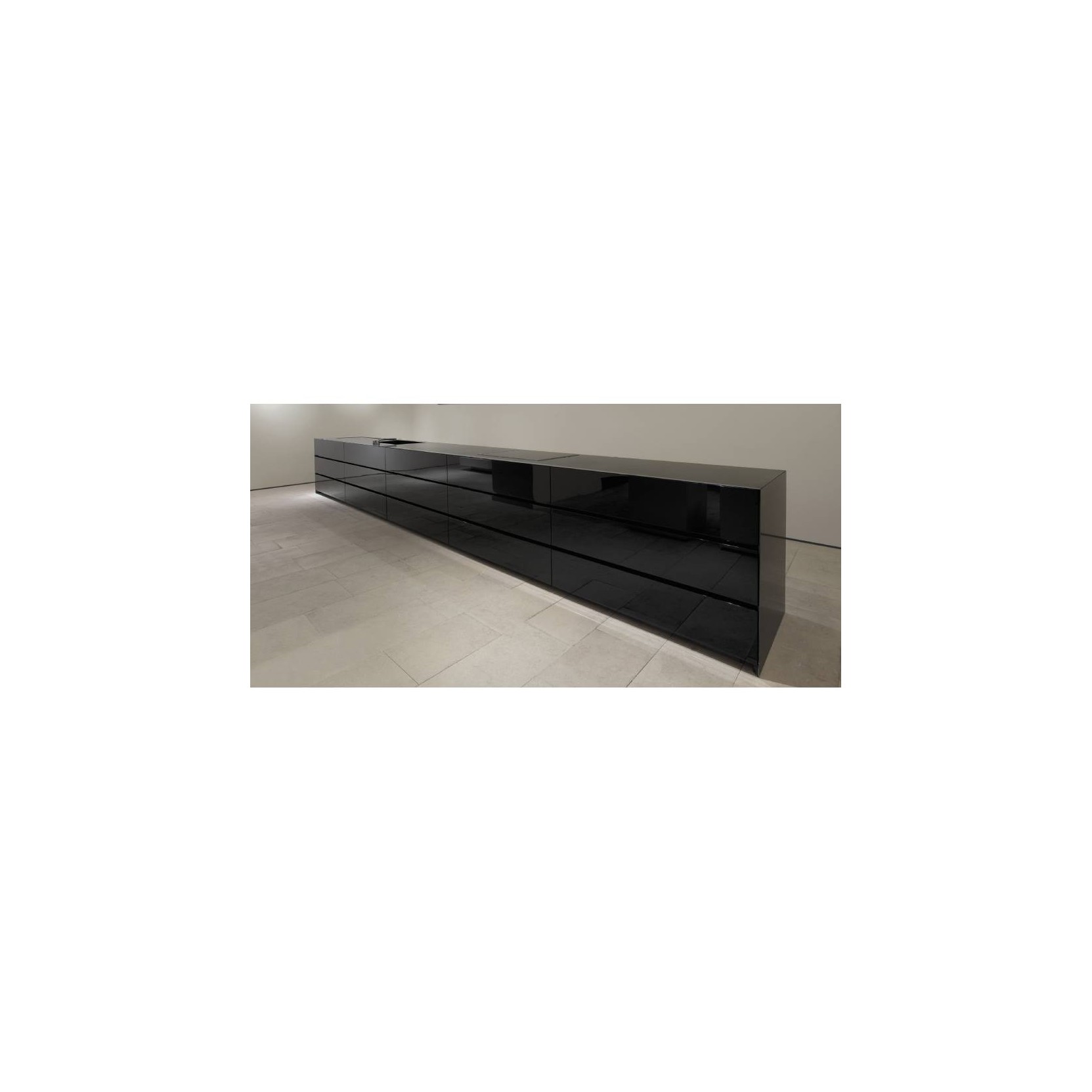 Gandhara has horizontal profiles that appear to stretch the length of the kitchen. the worktop is 45° edge so that the union with doors, also 45° edge, is linear and continuous. gandhara has been the first kitchen where the union between worktop and basket fronts creates a 45° edge. tall units instead have vertical profiles. available materials wood, high gloss or matt lacquer, stone - can be matched in manifold ways.