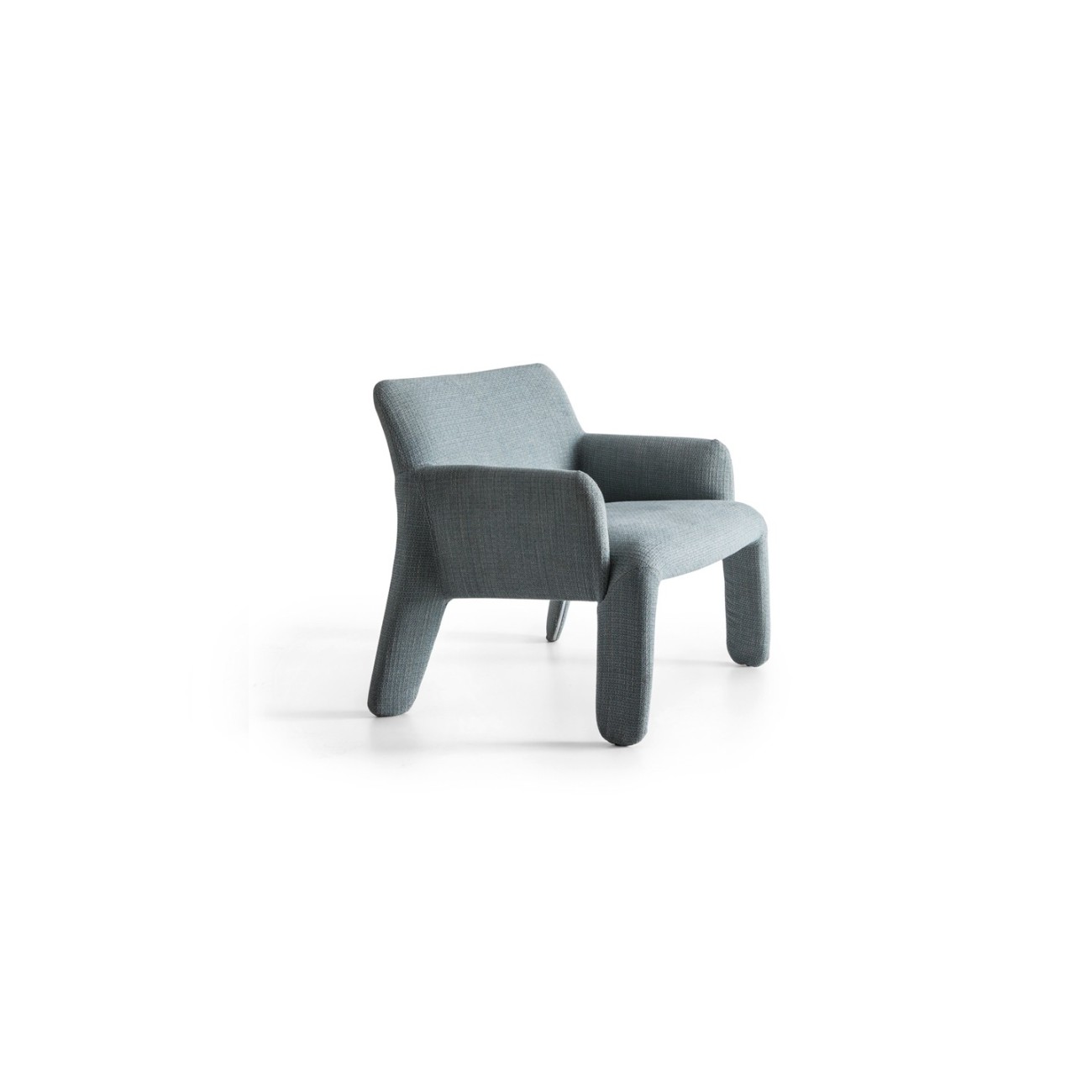 Glove-Up features an internal metal frame with elastic straps, ensuring durability and comfort. The padding is made of flexible cold-foamed polyurethane, covered with a bonded velveteen lining for added softness. The plastic feet provide both stability and lightness. The external cover is fully removable, as indicated on the attached label. The armchair has dimensions of 55.6 cm in width, 54 cm in depth, a seat height of 40.5 cm, and an overall height of 71.5 cm.