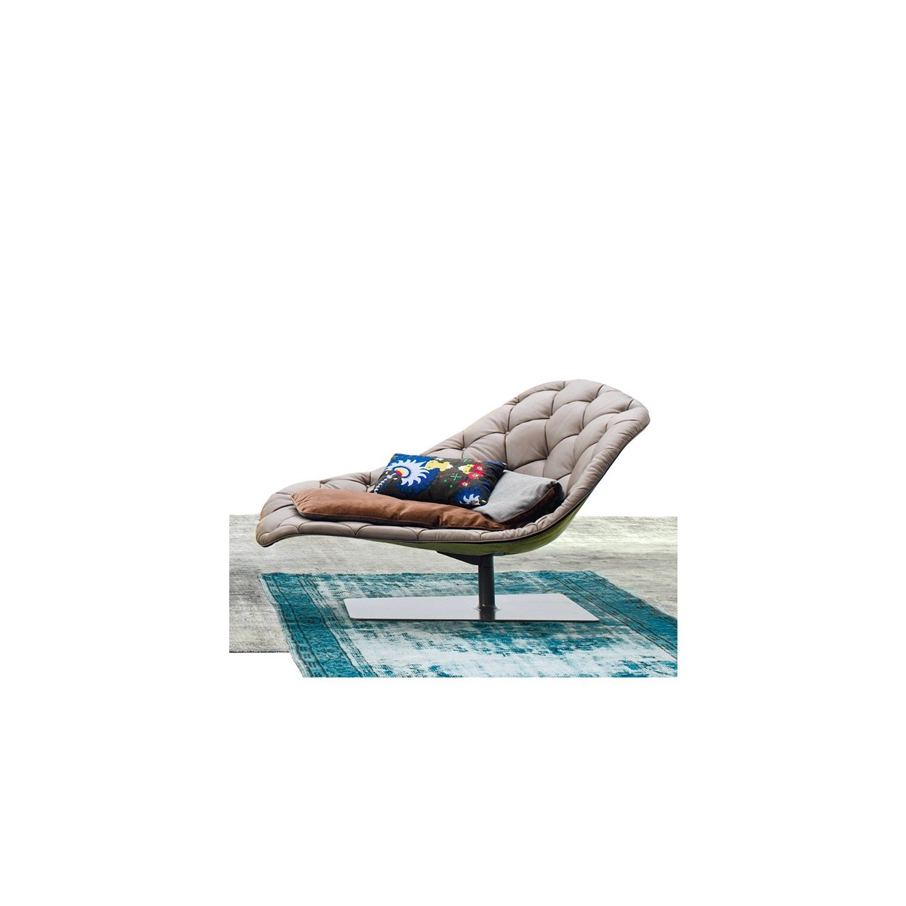 Taking on button tufting, giving it a new spin, revolutionizing the concept, Patricia Urquiola has designed a range of products which appear to be liquid in shape as if they are melting over their frame to create soft, comforting, almost casual lines where the fabric or leather are fixed to the shell using press studs.
