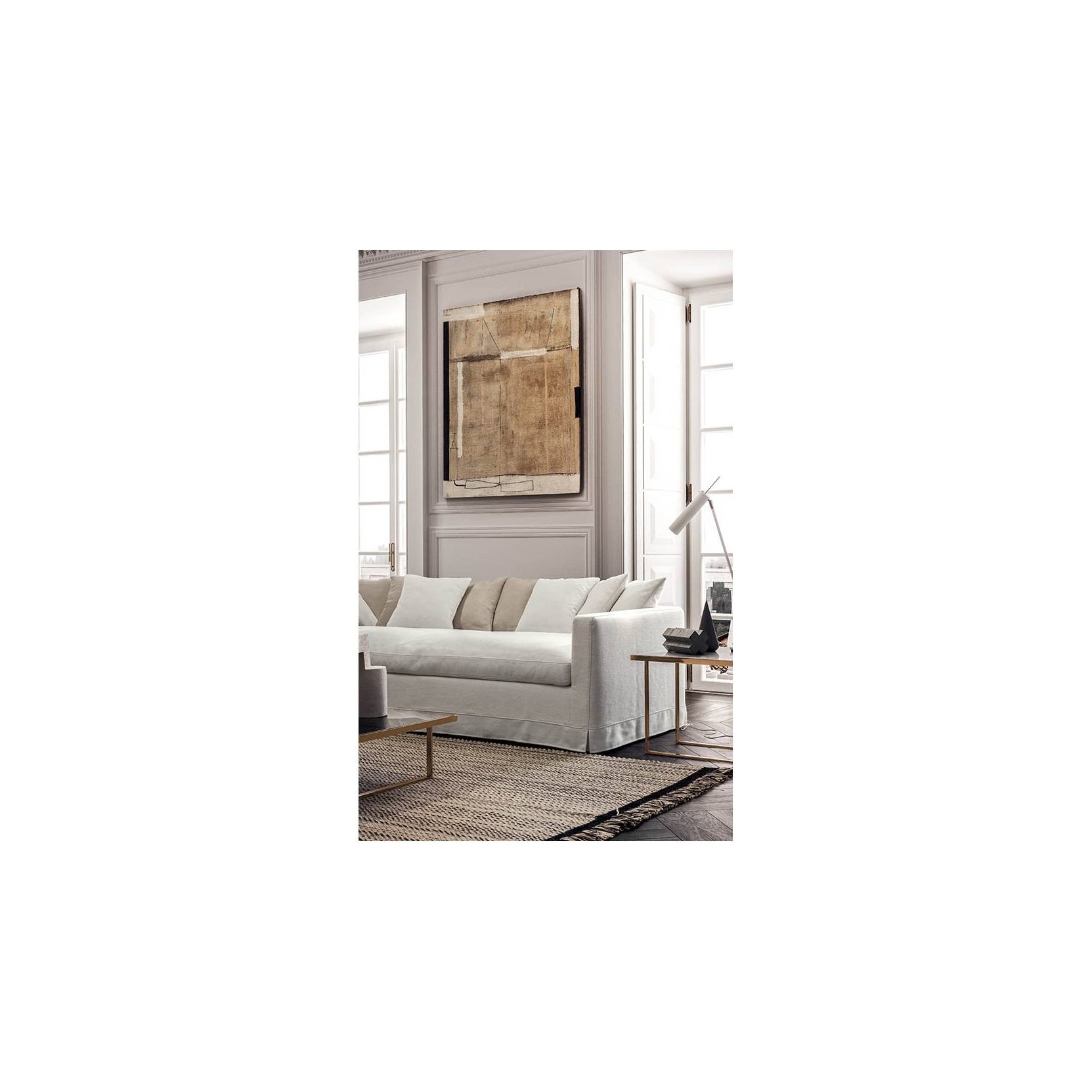 A cosy nest: thanks to its informal style, Otto meets the need for comfort and sharing with its simple, reassuring lines. The single, deep, soft, feather-filled seat cushion invites you to relax and enjoy entertainment with family and friends. The backrest’s curved shape features lots of feather-filled cushions that offer comfy, customisable support. The covering is available in all the collection’s fabric options, is removable and loosens up towards the base.