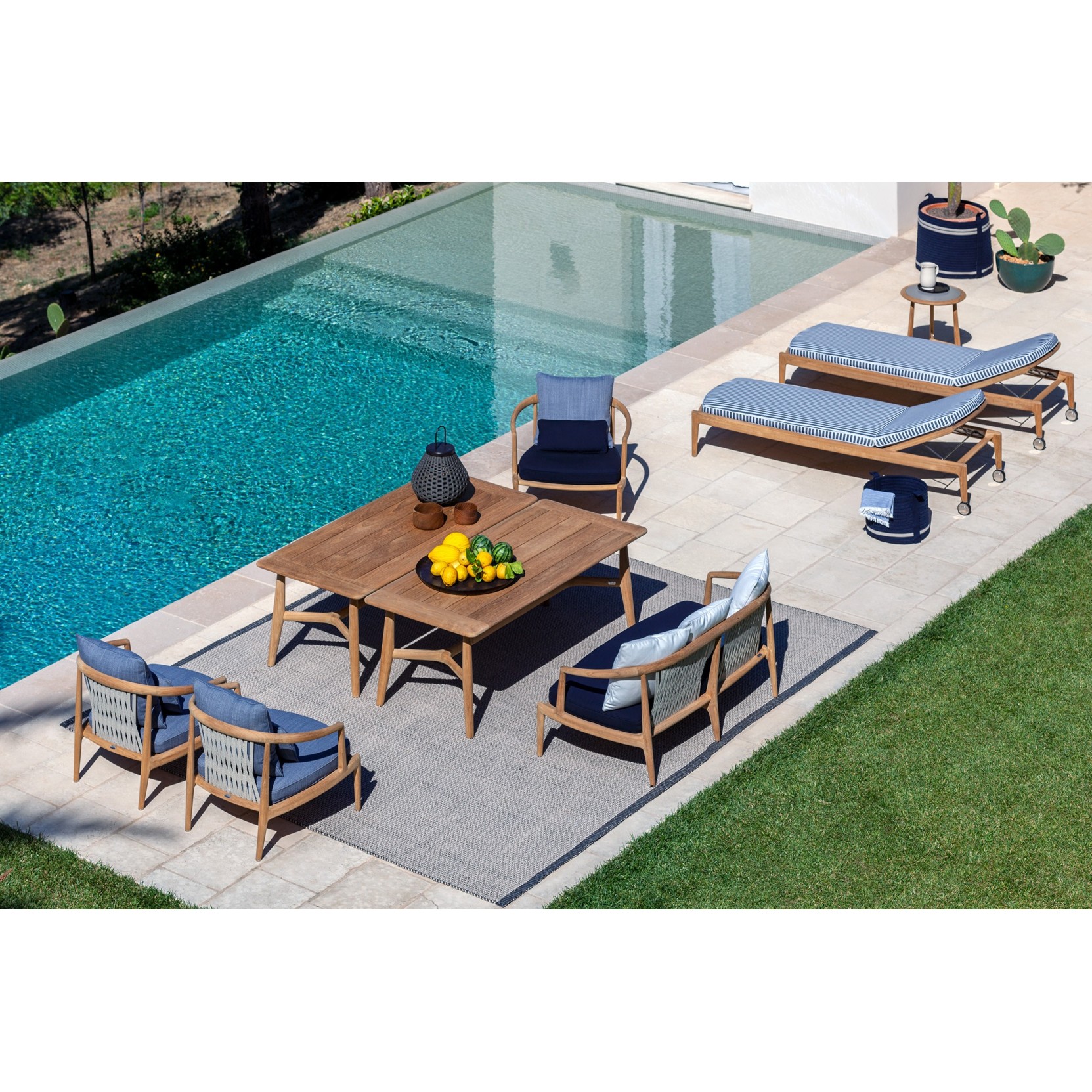 Poltrona Frau interprets the outdoor space by surpassing the distinction between outdoor furniture and indoor furniture, creating spaces to be lived in all year round and furnishing any outdoor setting. The series of accessories and furniture complements are made with carefully selected materials that, through a freely combinable system, create harmonious and inviting environments. For greater seating comfort, the cushions are designed to be freely used on all seating in the outdoor collections, from armchairs to sofas.