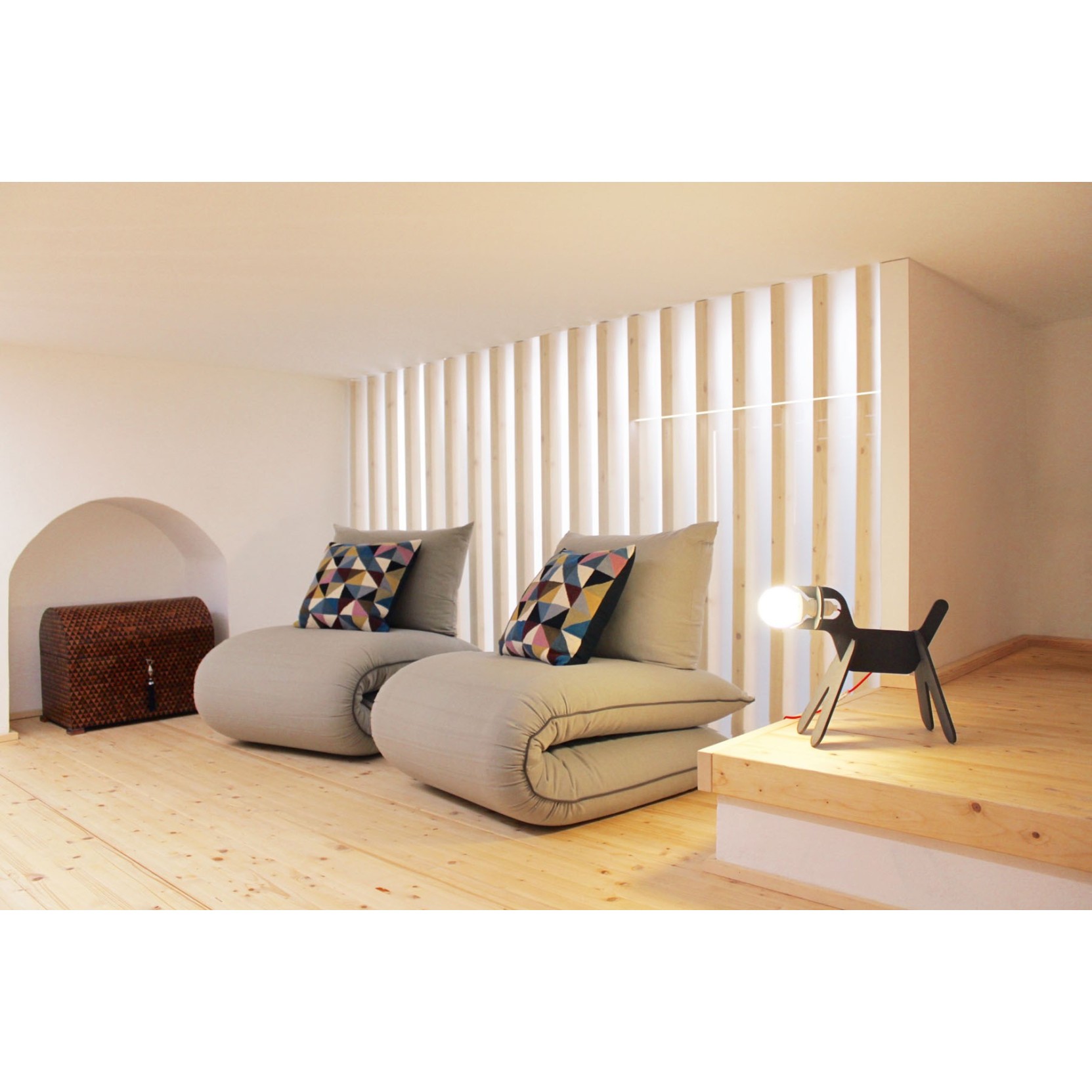 Multilayer structure, padding in expanded polyurethane, fabric cover.