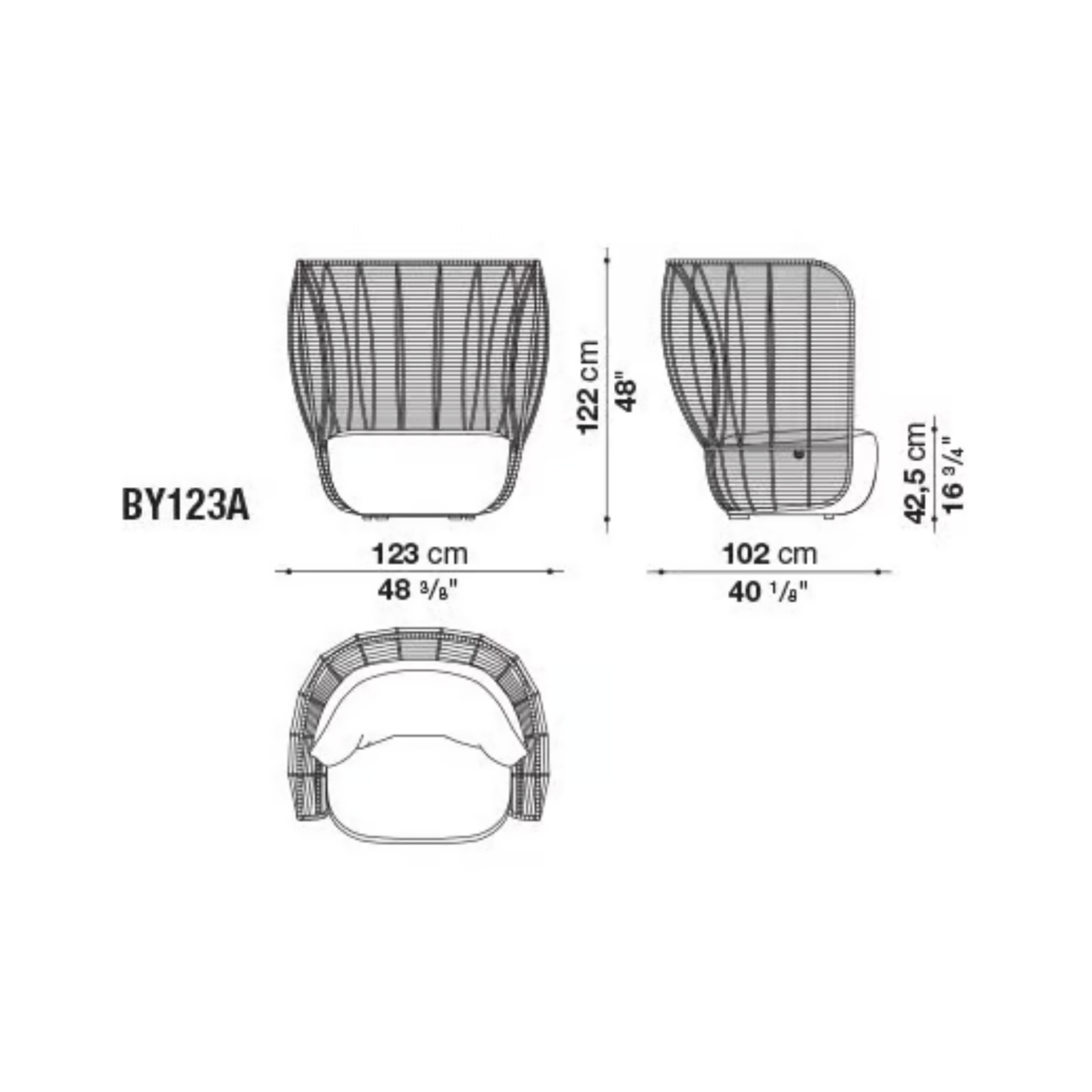Characterized by a sculptural design and a distinctive weaving, this line stands out for its elegance and unparalleled comfort. In this proposal, we present the armchair with a high back, ideal for moments of relaxation outdoors.