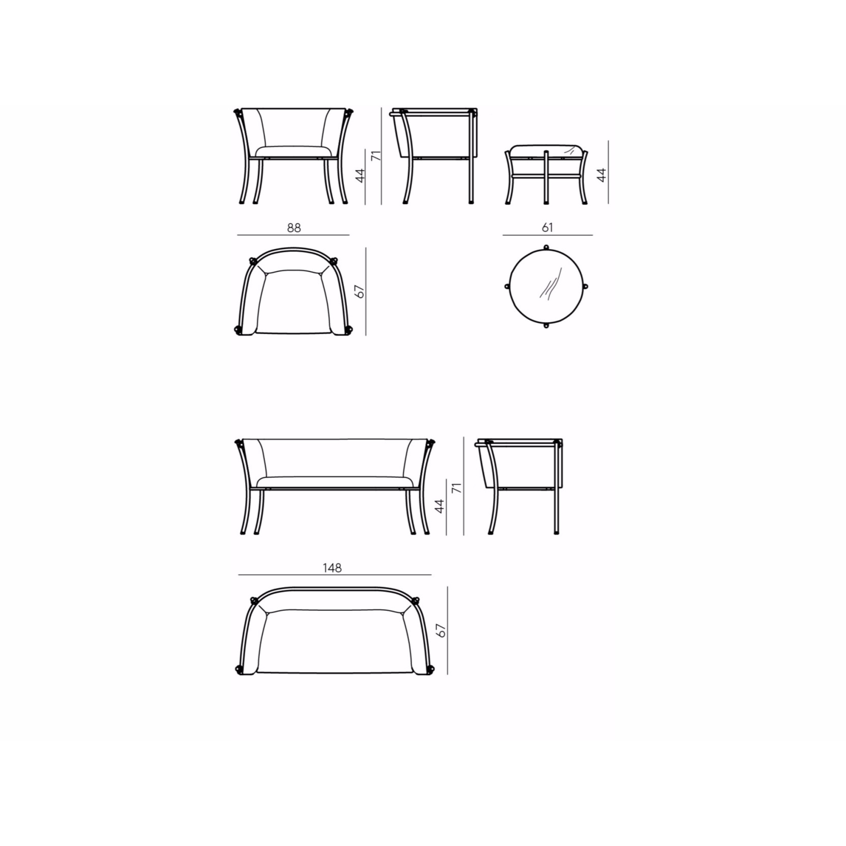Expressive and light, Smeralda shape now revisited is perfect as chair and ottoman. Pretty and thin, comfortable yet solid tells stories and is alway ready to listen. The structure alludes to those chairs used in the parlors of the past made in willow, also thanks to the elastic colored cord included as a contrast.