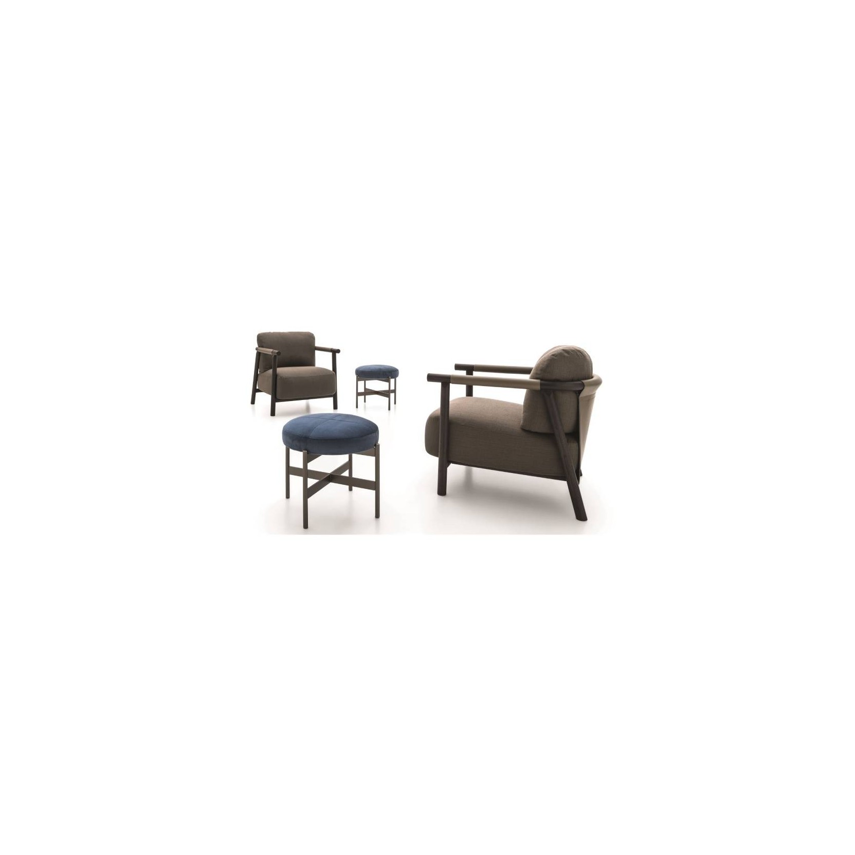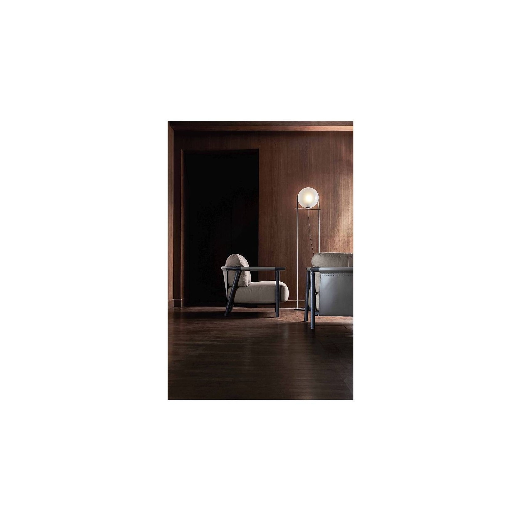 Paired with sofas arranged into an island to favour conversation, or standing by itself next to a coffee table for a comfortable read, Nathy is always an iconic presence on the domestic scene. Sheets of natural leather are stretched over the wooden frame of the armchair to define and contain the shape of the soft, wraparound seat and backrest cushions.