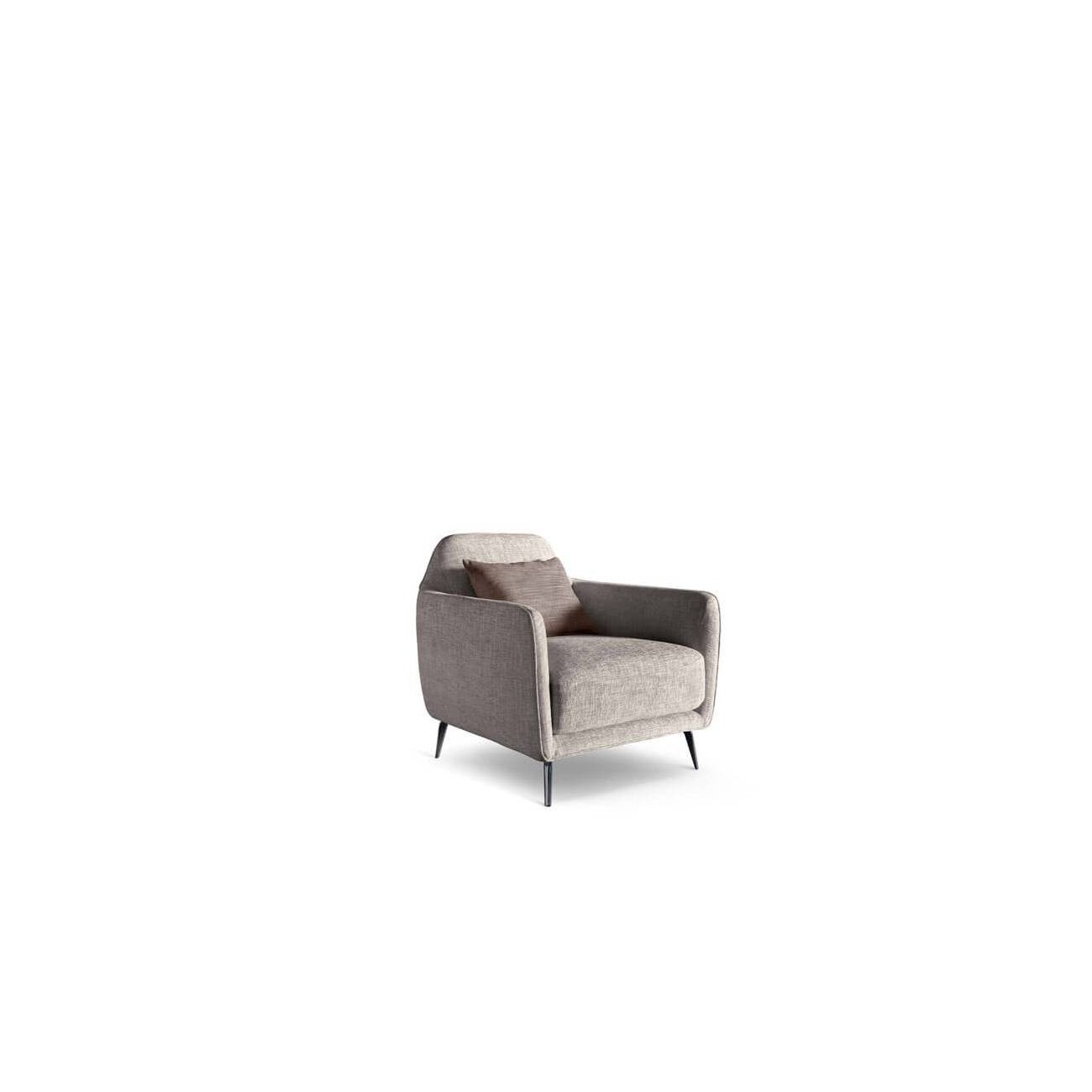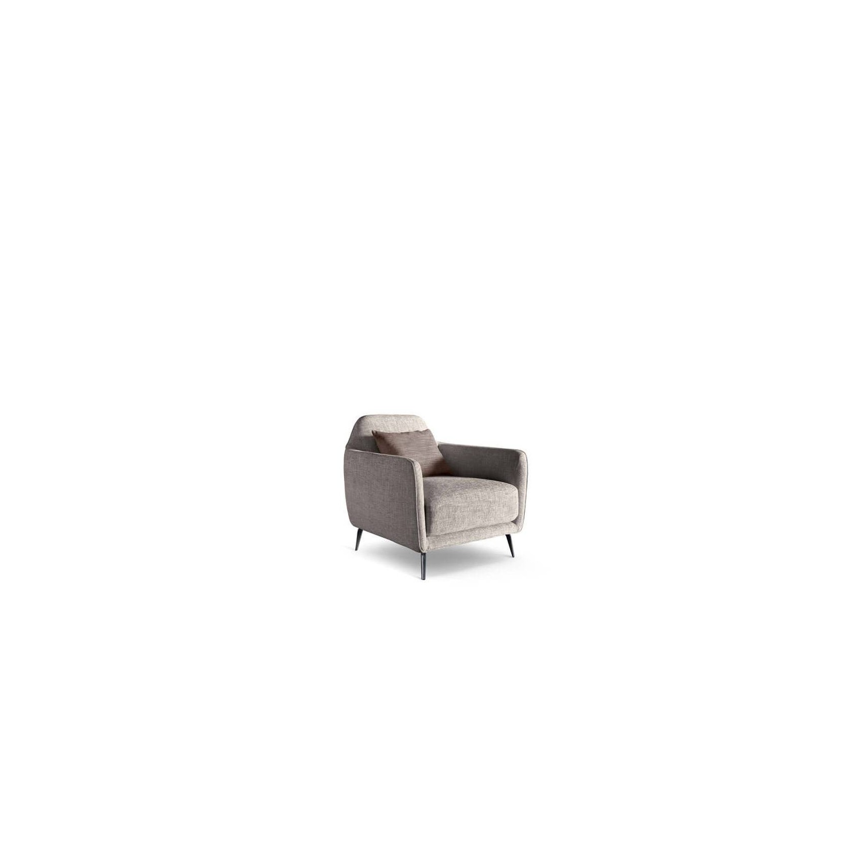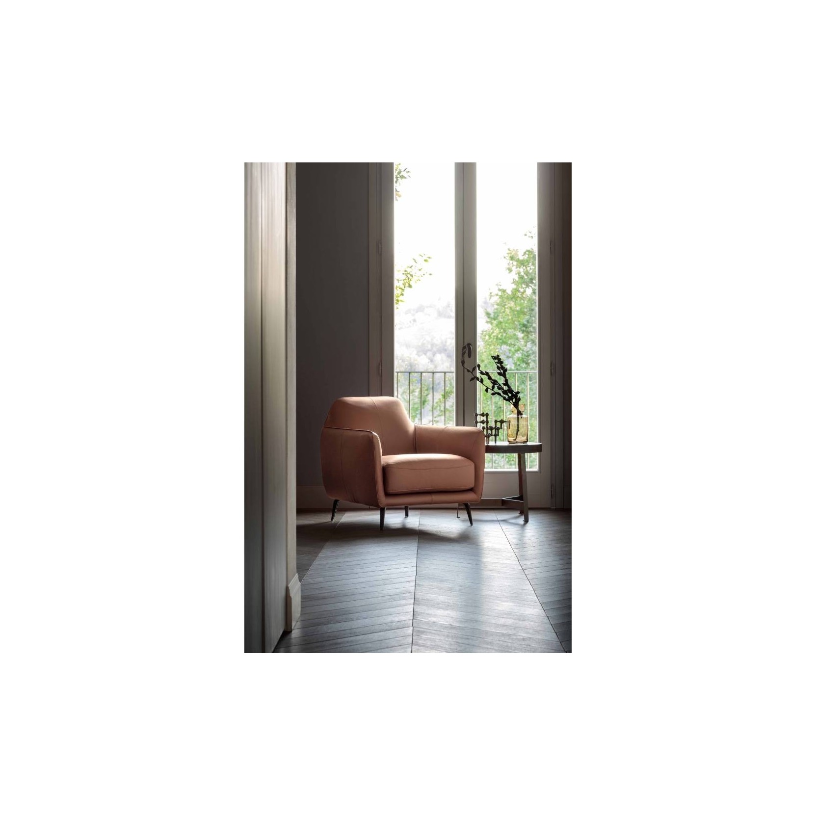 The armchair recalls the classic design of the 1950s: harmonious and compact shapes are given a distinct and recognisable personality with pressure die-cast feet in exclusive design.