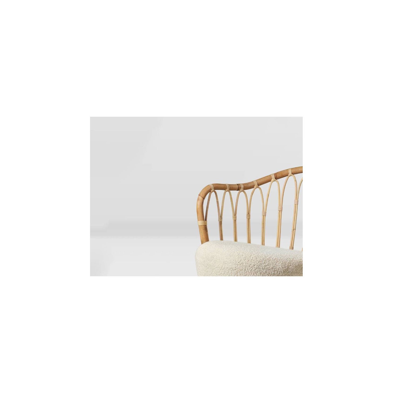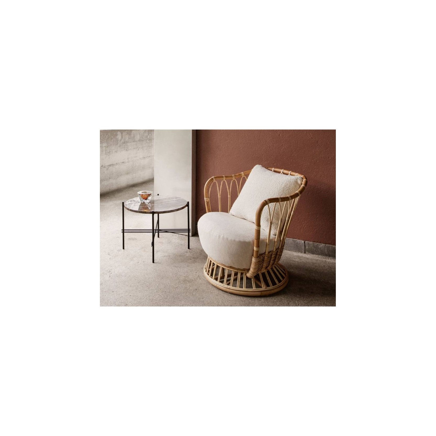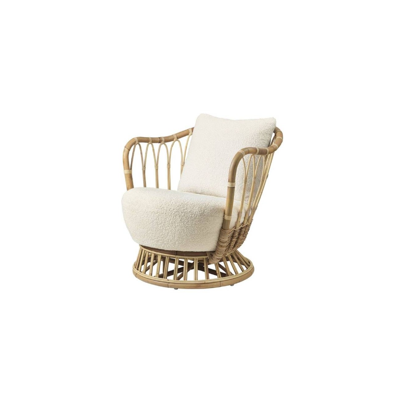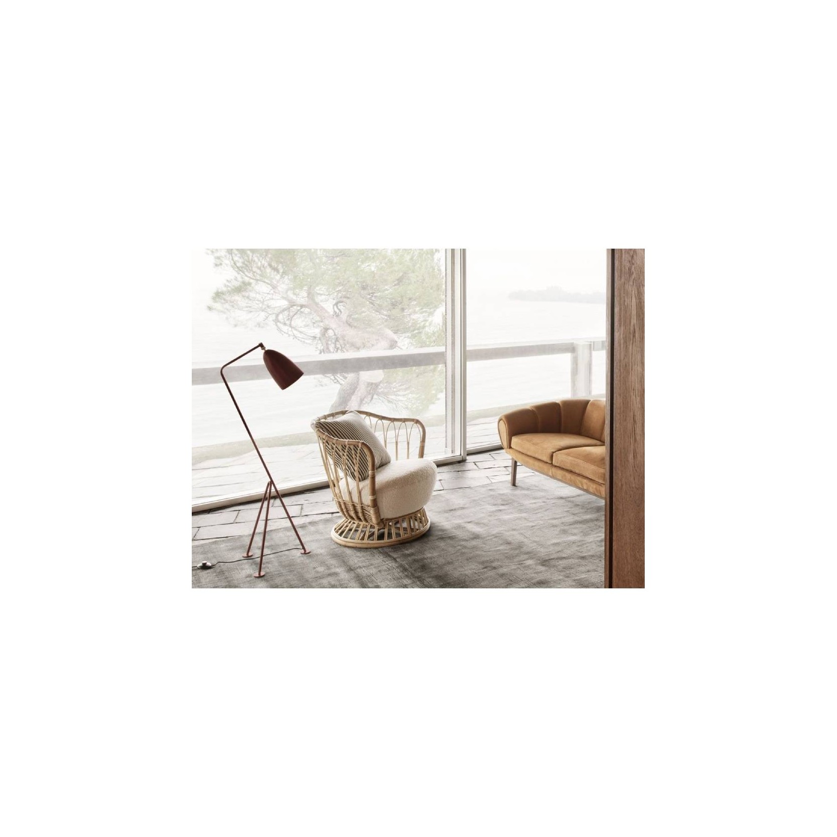 Grace is a chair by Tove Kindt-Larsen for Gubi. It is made of hand-woven rattan, a natural material, and includes a circular seat on a slightly larger, staggered circular base, with a wraparound back populated by long rattan rings. The lower part of the backrest is instead woven to support the generously padded seat cushion. The Danish architect puts the flexibility of rattan at the heart of the Grace Chair project. The result is a sophisticated seat in which the essential sign is made important by craftsmanship. Grace Chair is a piece of design furniture that fills the space thanks to the personality of the design and the strong presence of a unique and delicate material such as rattan. His furniture was characterized by a refined sense of quality and a design language that responded to the changing tastes of the time. Tove Kindt-Larsen also moved away from designing room sets to favor single pieces of furniture so that end users can curate their own spaces.