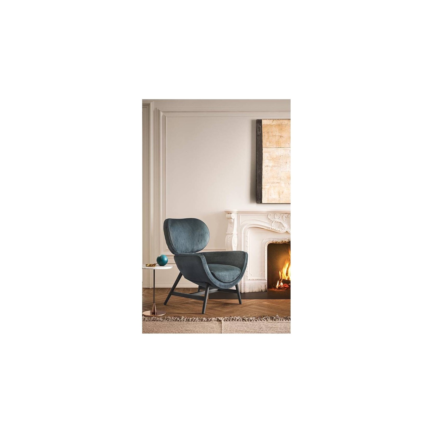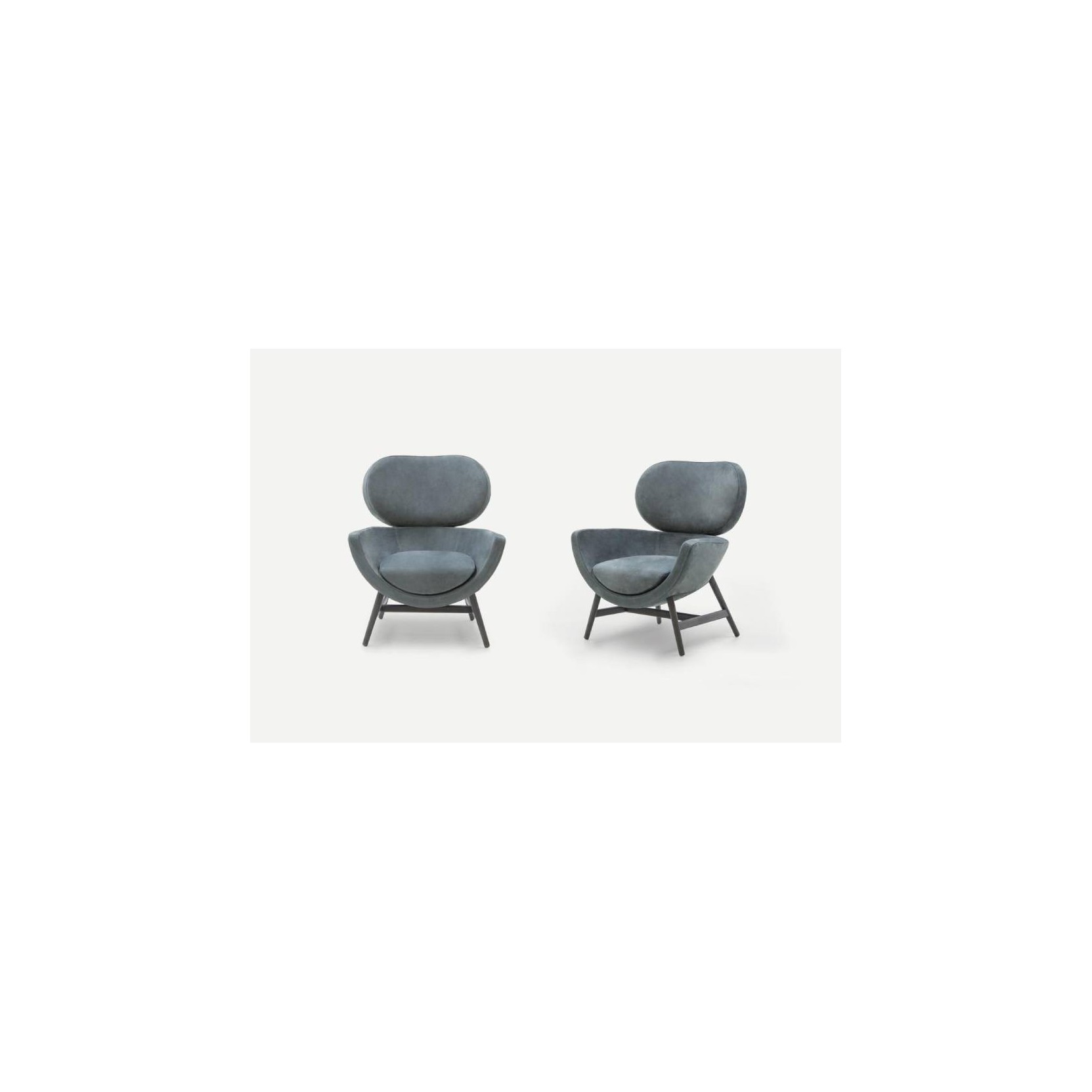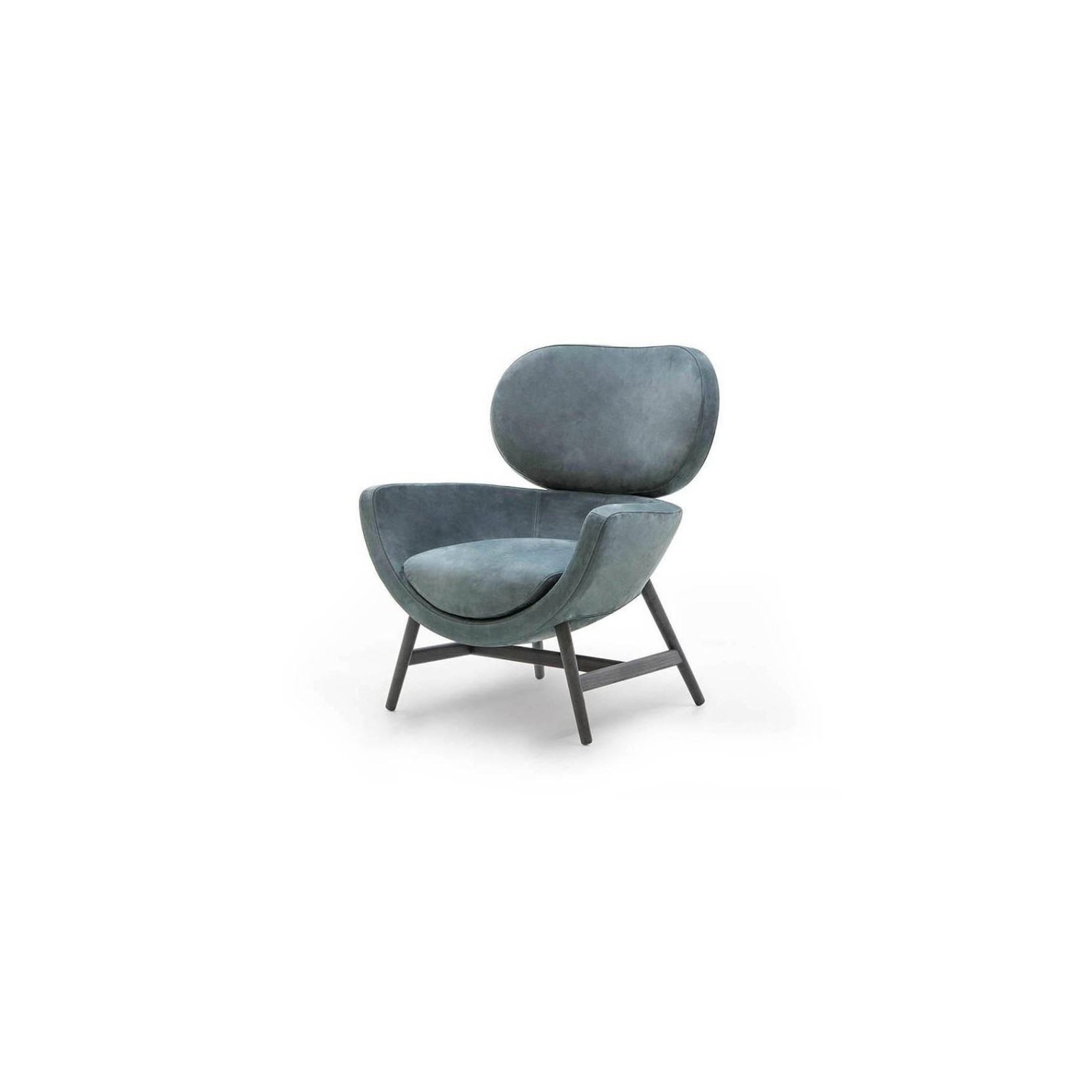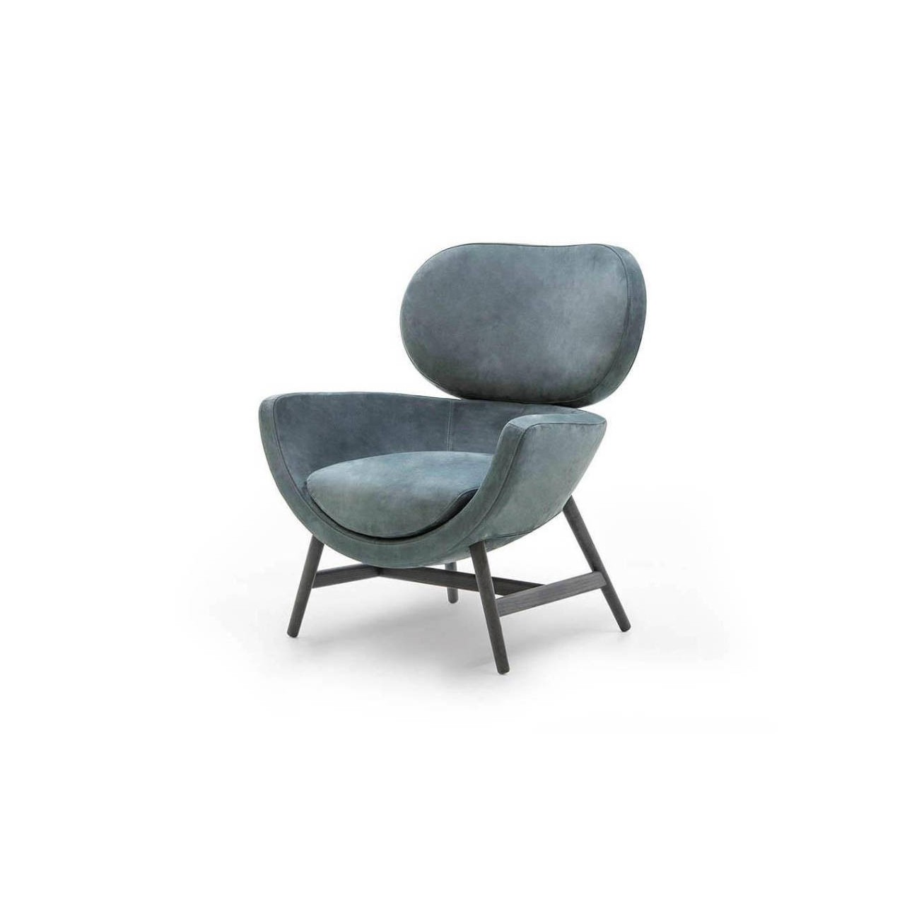 A compact, elegant and comfortable design: Laurie is a tribute to the best Italian tradition reinterpreted in a contemporary key by the Calvi Brambilla studio. The fresh appeal of its image is achieved using elementary, cocooning, geometric shapes connected by a generous amount of formal minimalism. Its distinctive shape consists of a lower shell and a large, curved, backrest attached using a simple mechanism borrowed from the automobile industry. Its cosy, almost motherly volumes invite you to sit down and relax. The base offers an informal and agile support to the frame with its four, slanting legs that are more reminiscent of a chair than of an armchair, making Laurie extremely versatile and adapting it to any room, from the reception room to the bedroom. Extensive customisation options contribute to its versatility. To satisfy any taste, numerous combinations can be achieved using the many finishes available for the base and cover.