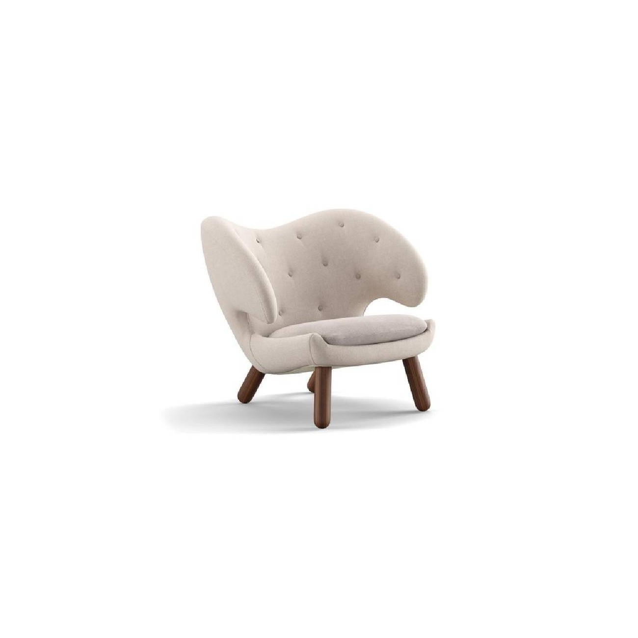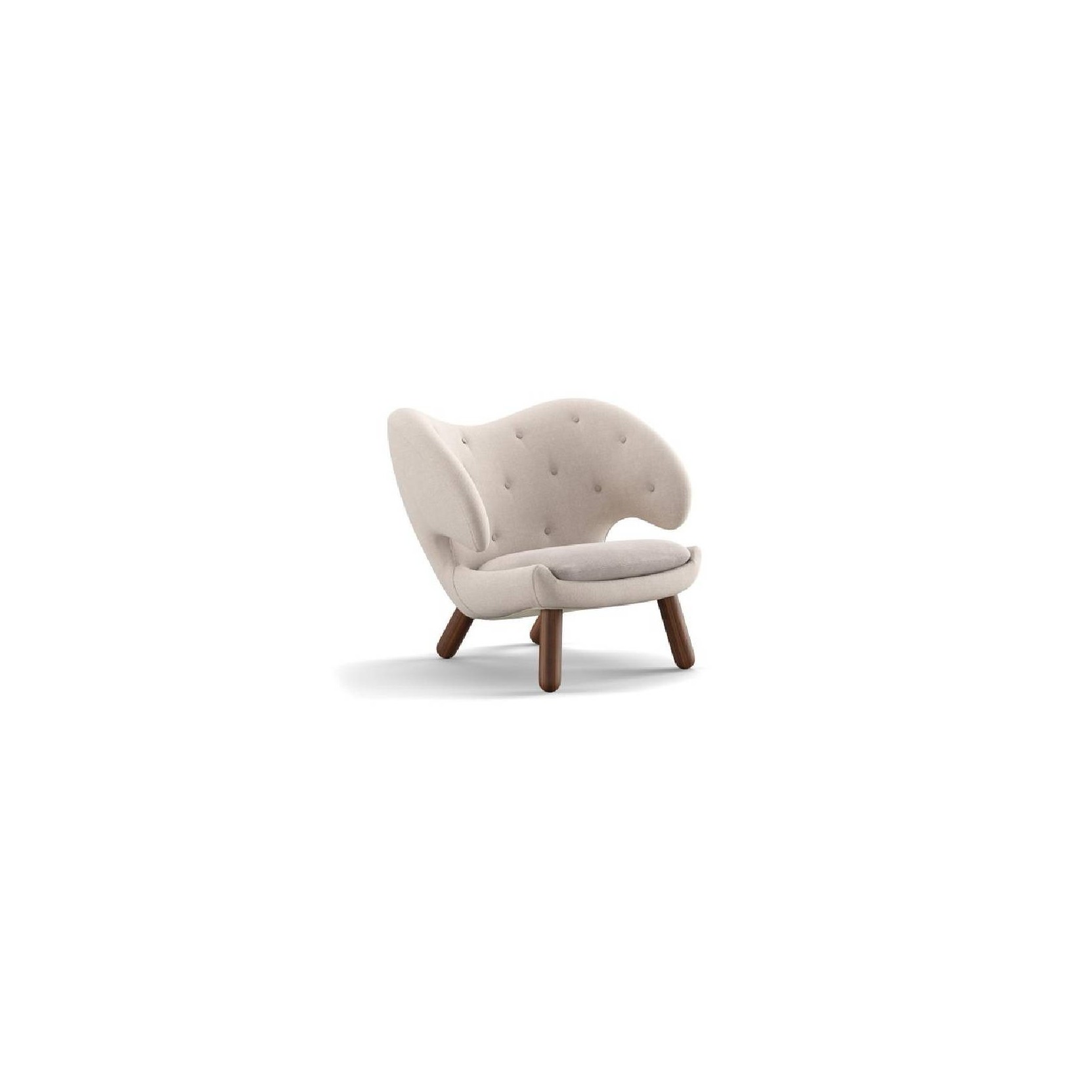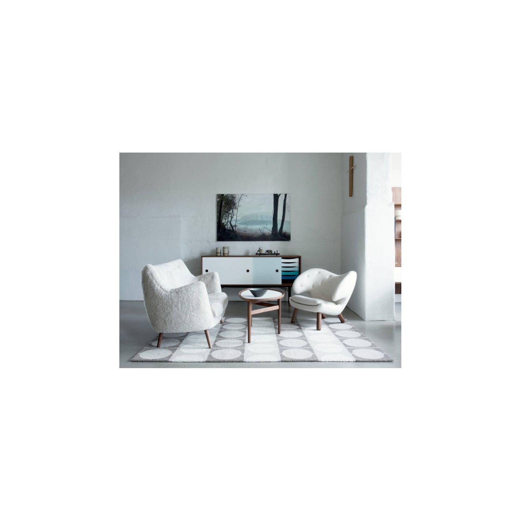 In no other design of his is Finn Juhl’s fascination for surrealism more apparent than in the Pelican Chair. Out of all of his many designs, the Pelican Chair was probably the one furthest ahead of its time. When it was presented at the Copenhagen Cabinetmakers’ Guild Exhibition in 1940, it stood out with its unusual shape and sturdy legs.