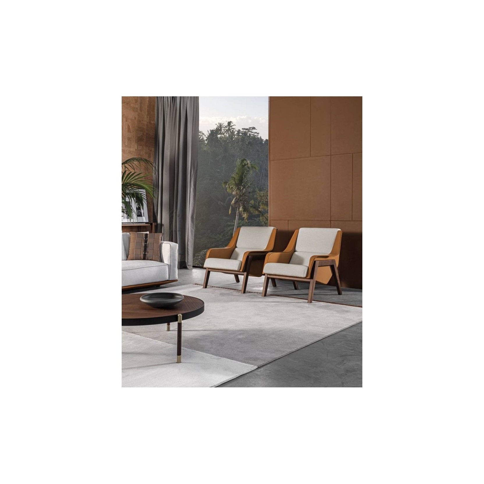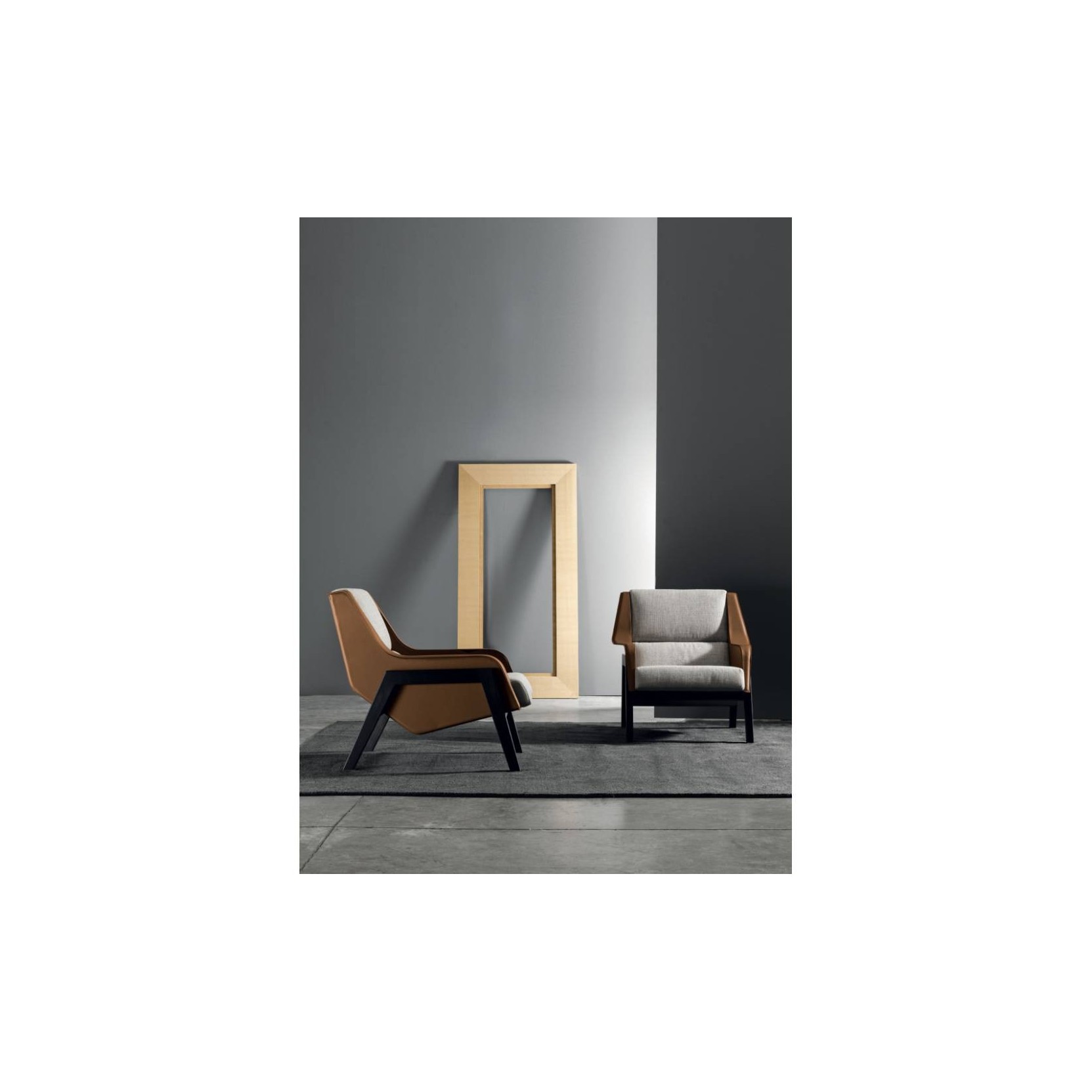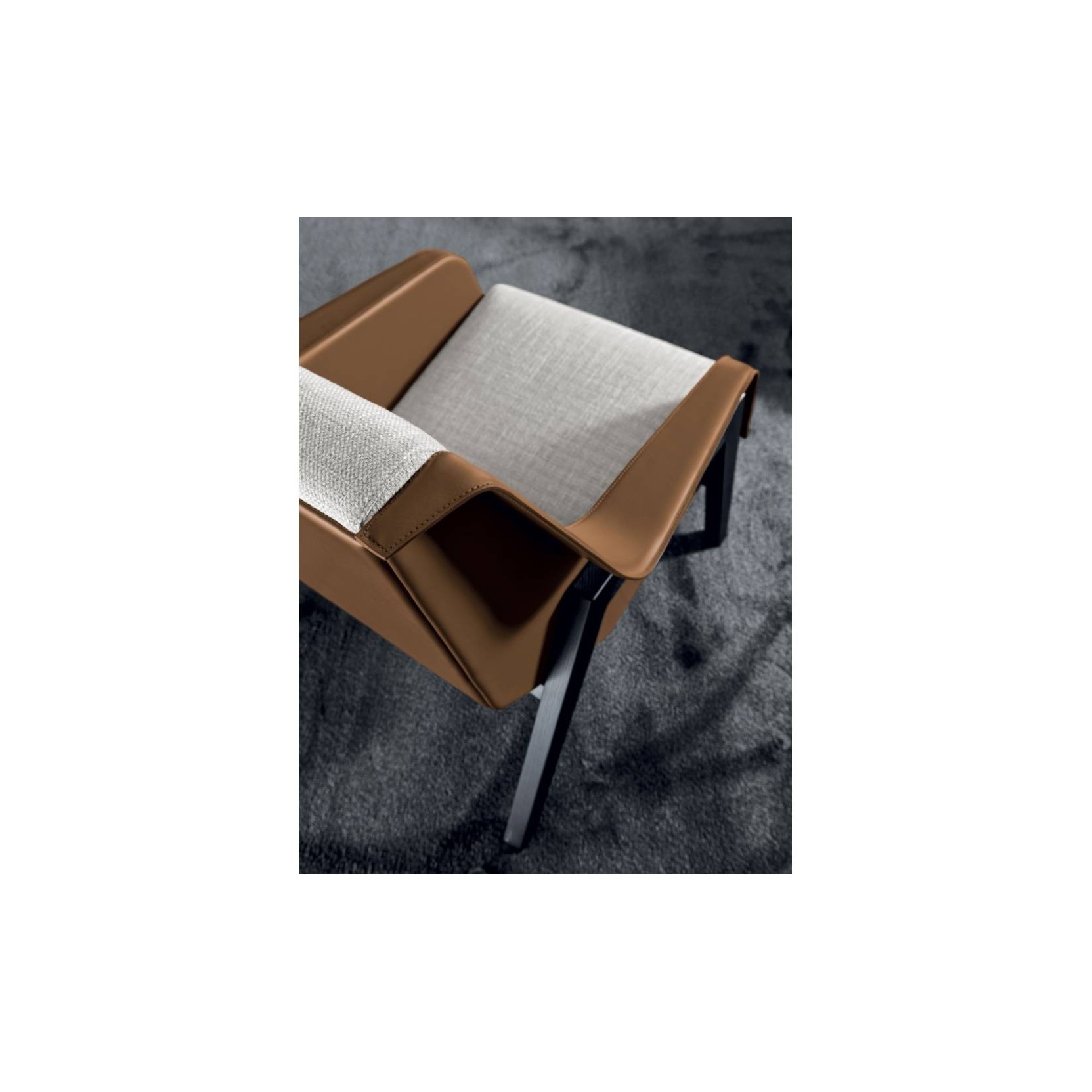 Three times beautiful and vintage. A charming design, where the play of materials not only uses exceptional protagonists, but becomes the strong point of Via Condotti. Saddle, fabric and wood make this essential masterpiece of rationality that, elegant as the street it takes its name from, perfectly adapts to the most modern settings. Its legs are in Canaletto walnut or ash open-pore and the structure in steel.
