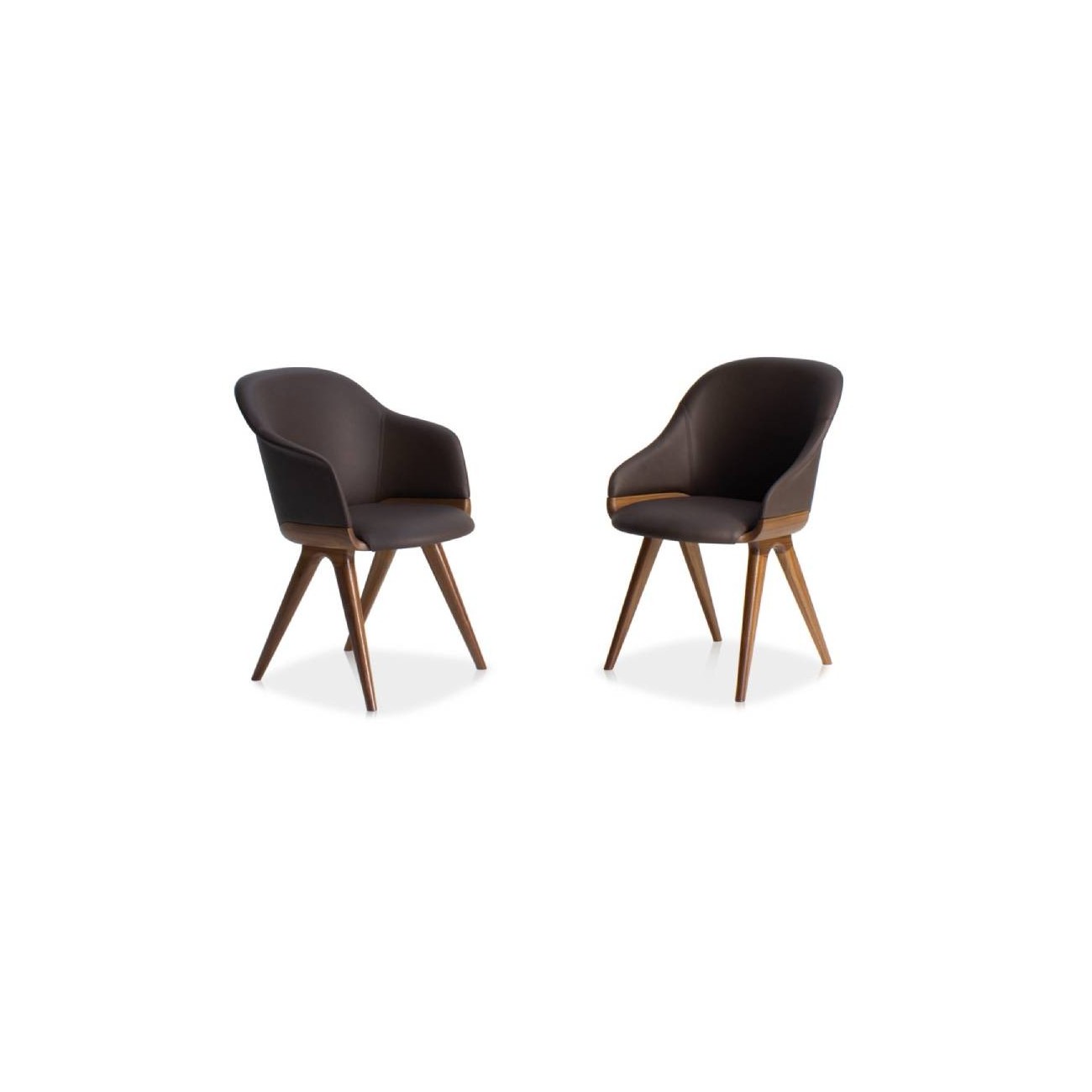 Chair and armchair with seat and back padded in fire retardant polyurethane foam, available in the fixed and swivel versions. Ash wood or Canaletto walnut frame. Finishes and covers as per collection.