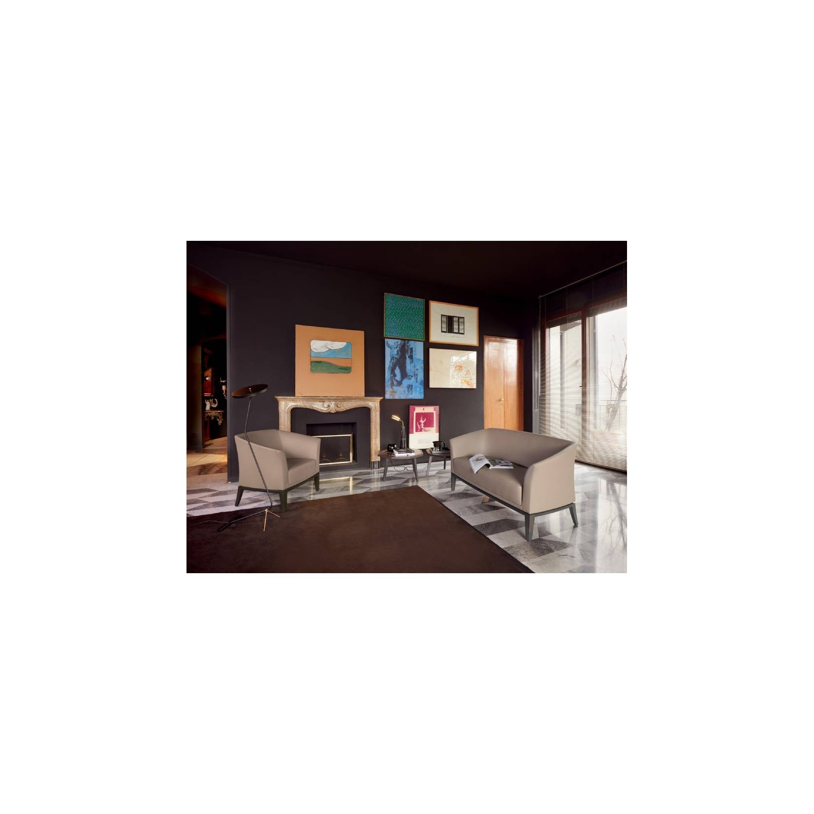 Squared and enveloping lines characterize the Venus seating collection whose slightly inclined arms invite relaxation. A product of bourgeois elegance ideal in a welcoming domestic living. As well as in sophisticated lounges.