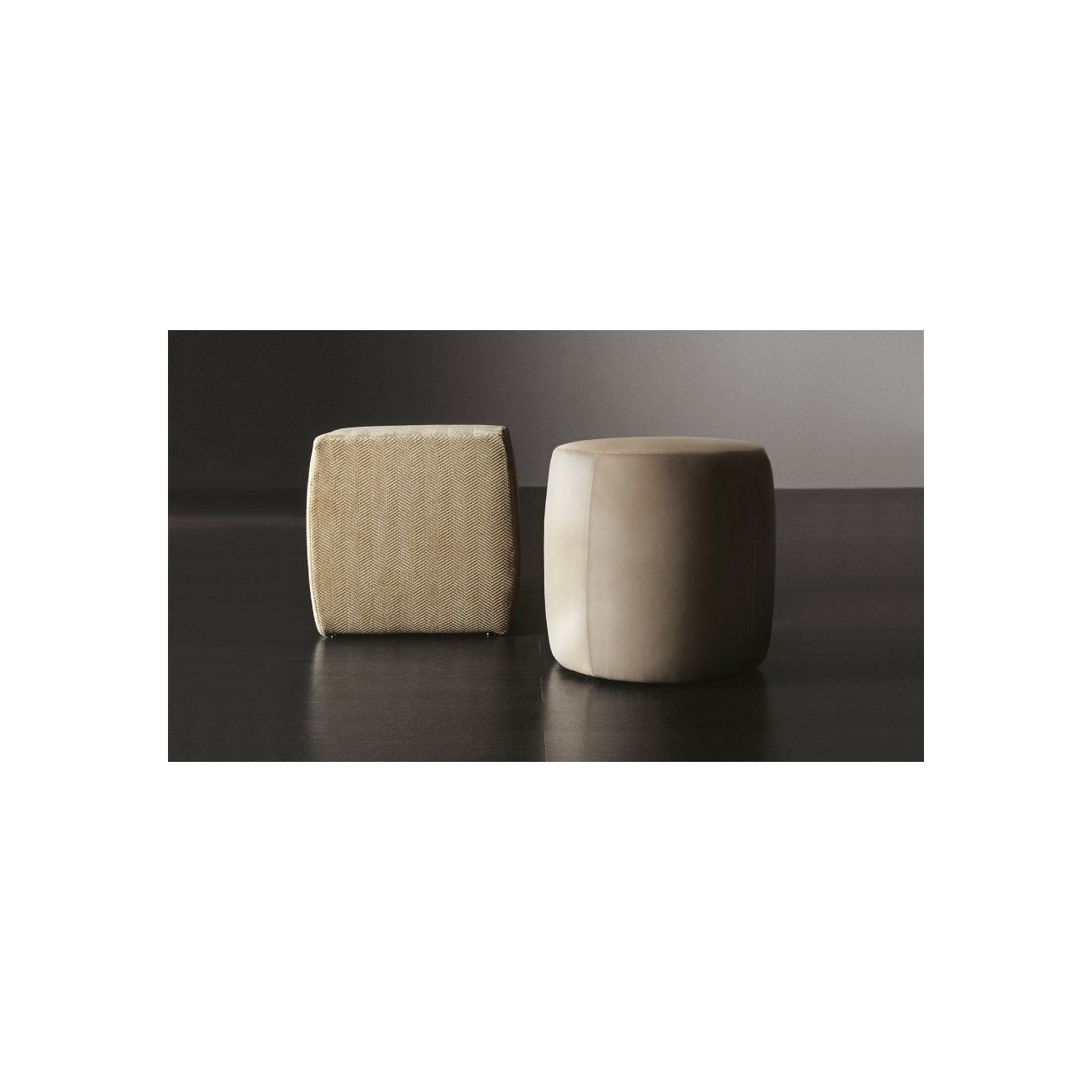 An extremely versatile collection of ottomans: pure, essential shapes which thanks to the almost unlimited possibility of different covers, may decorate any room with discretion and personality. Available both with a rounded or squared shape, they can be used either as a seat or as a support surface..