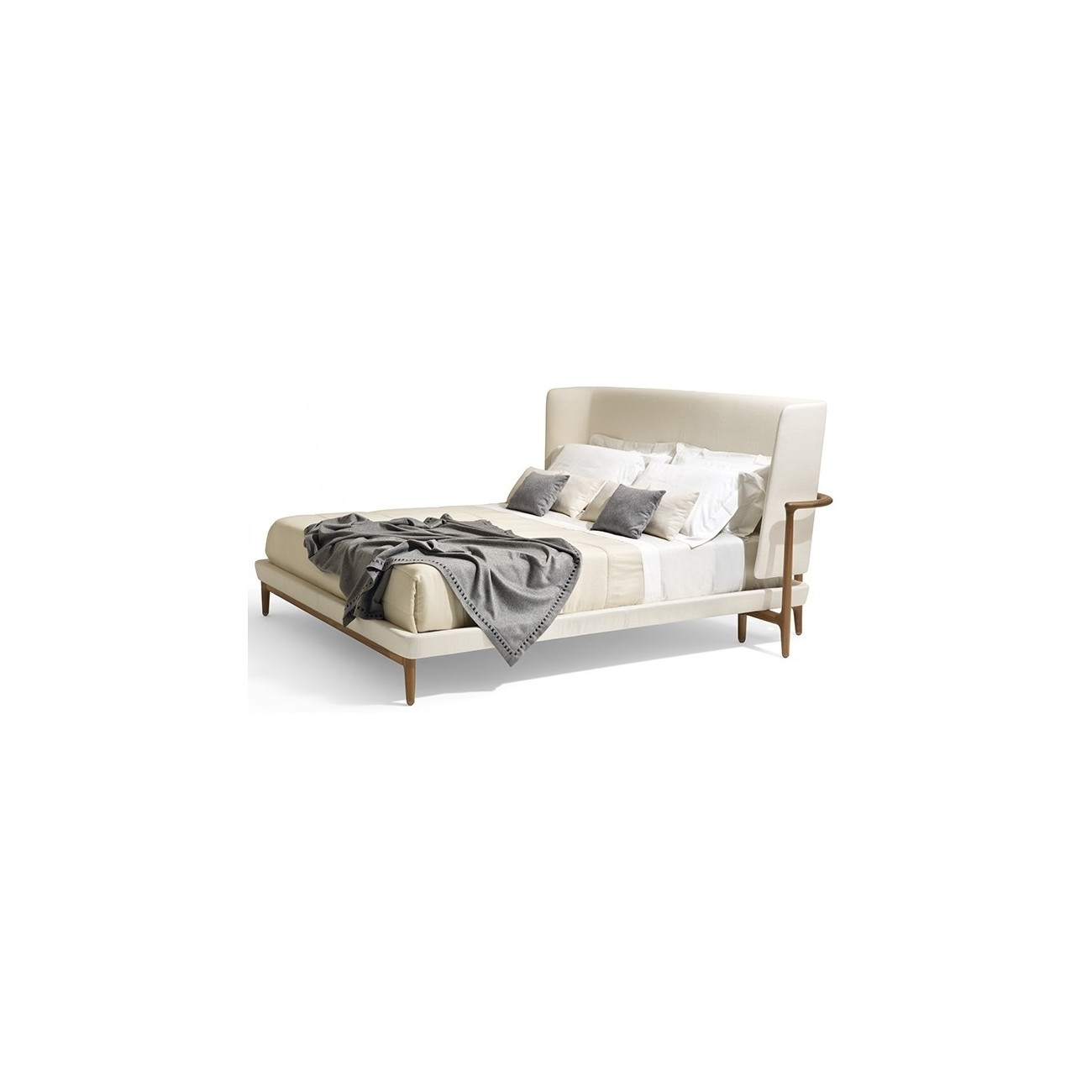 Pegaso, designed by Roberto Lazzeroni for Giorgetti, is a double bed featuring a solid structure made of solid walnut wood and a headboard upholstered in Polimex.