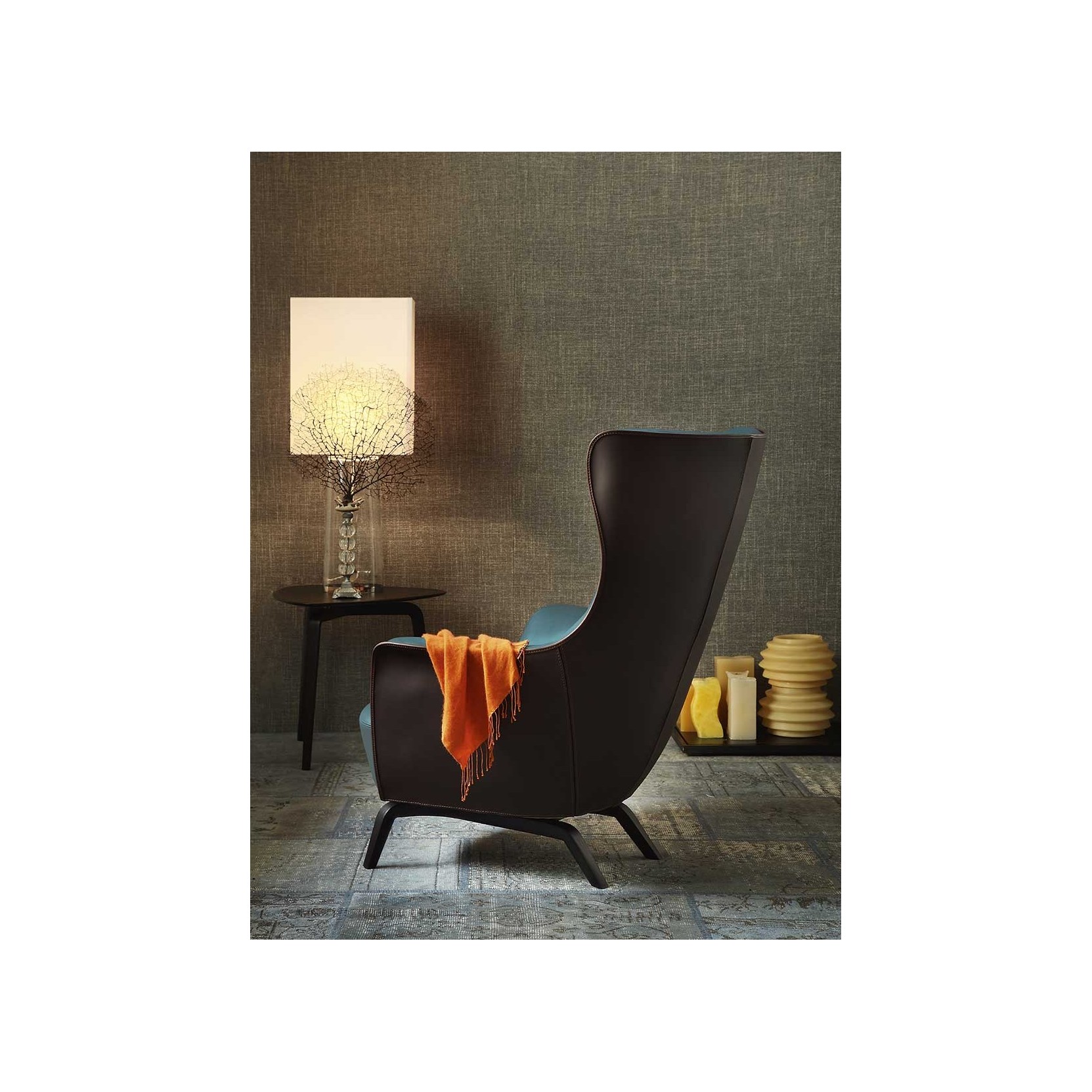 The upholstery is fully customizable: the armchair can be entirely covered in Pelle Frau® leather or combine two different materials, creating elegant contrasts between the external shell and the seat interior. The matching ottoman follows the same principle, offering a perfect balance of aesthetics and comfort.