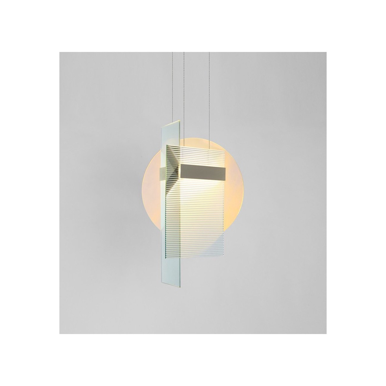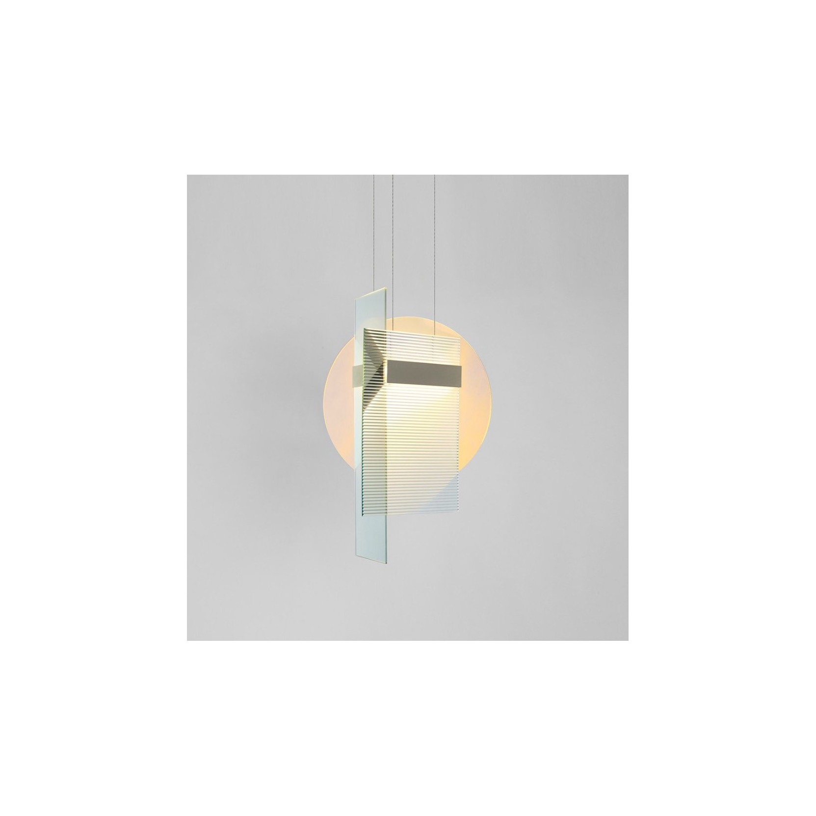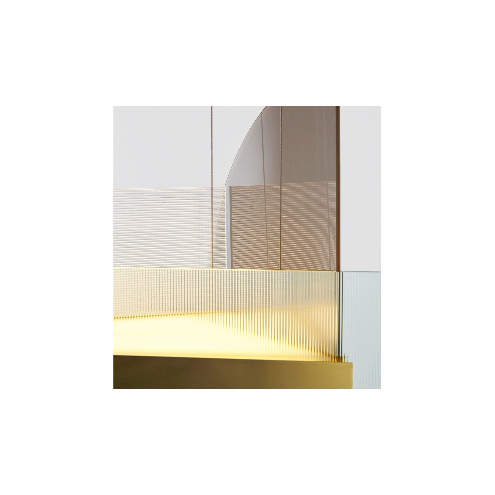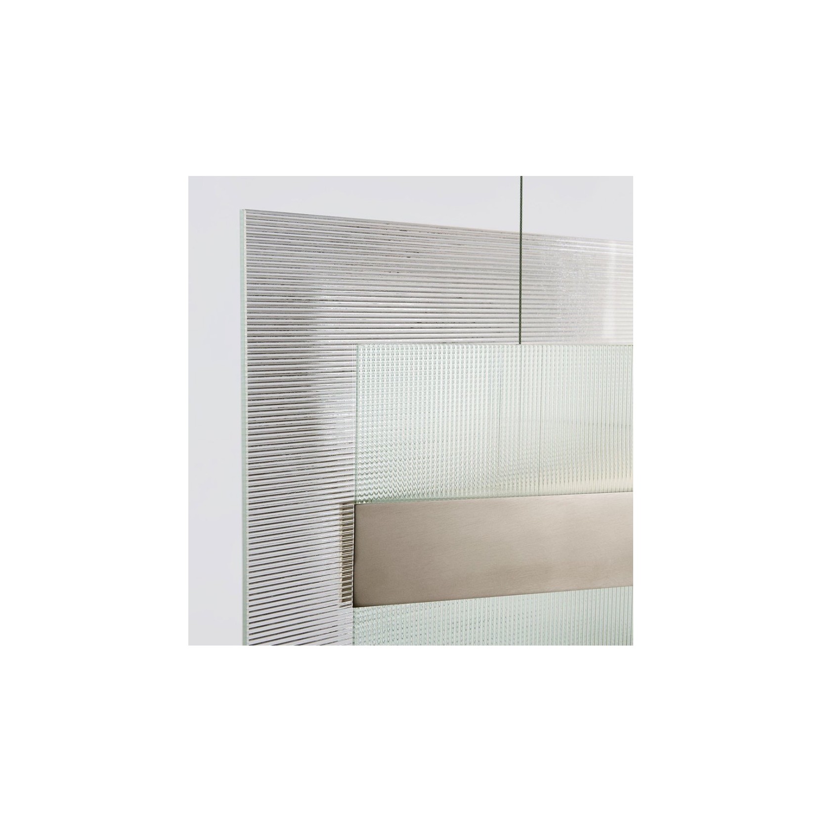 The Kazimir series is inspired by the early twentieth-century Russian modernist Kazimir Malevich, whose flat monochromatic canvases, colorful geometric compositions, and textured collages challenged existing notions of painting. Here, his ideas are transformed into three dimensions with pieces of textured and dichroic glass arranged in layers.