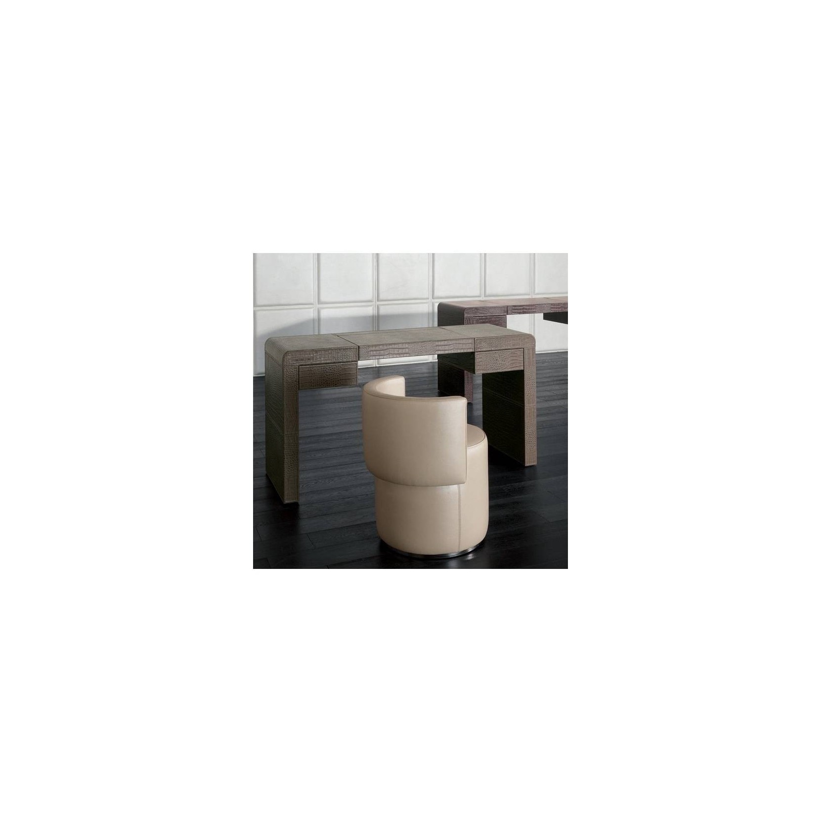 Poker designed by Rugiano is a dressing table with two drawers, flap and mirror and covered in leather. Details in steel or bronze. The matelassè is made using only soft and smooth leather cat. C/D. Rugiano brand is synonym with style: style that originates from distinguished and unique creations, designed to be timeless and valuable. Rugiano style starts from the company itself.