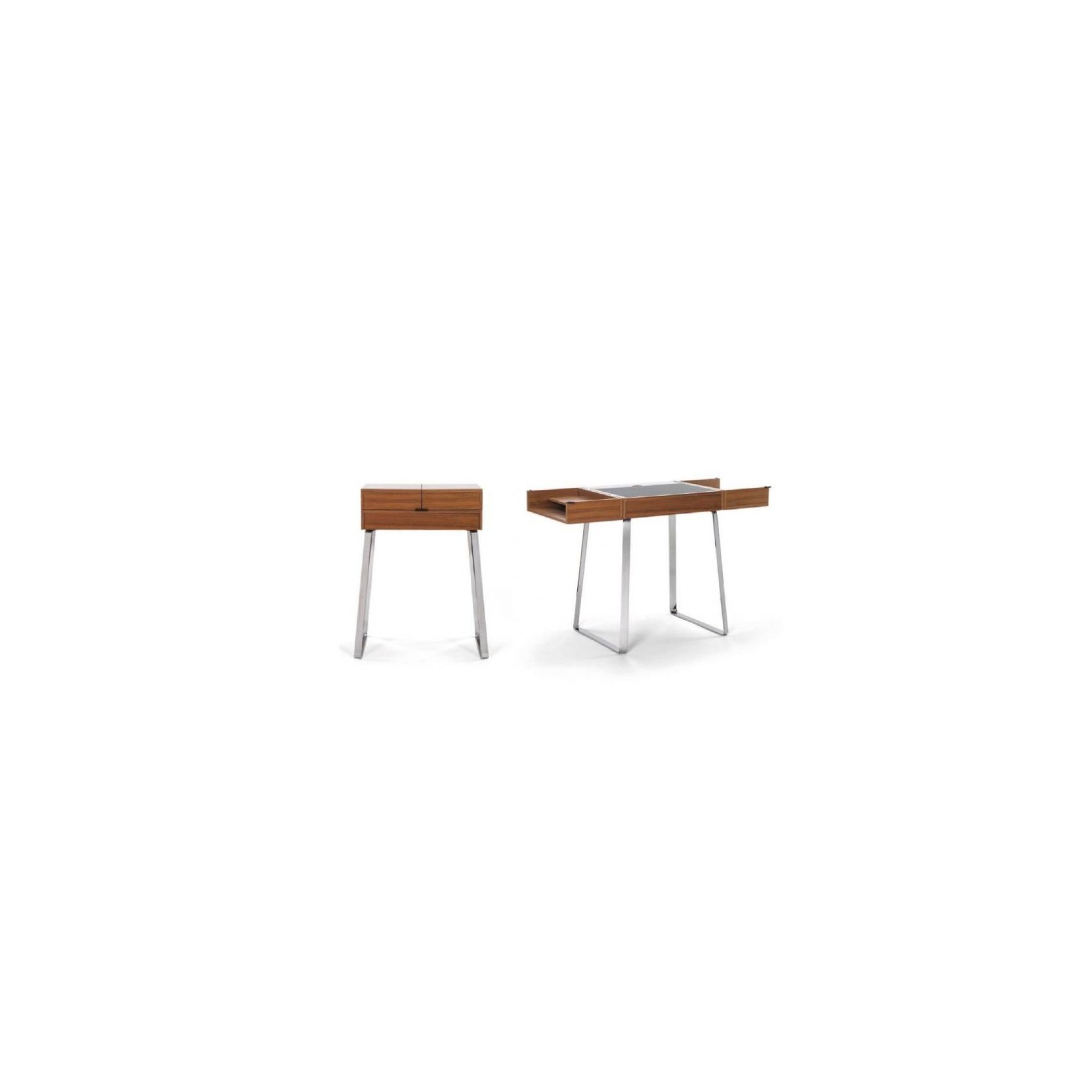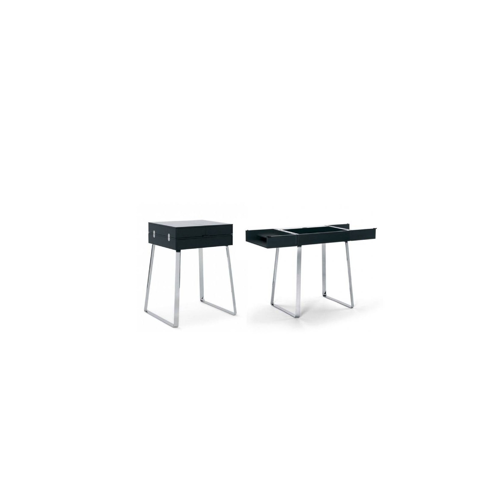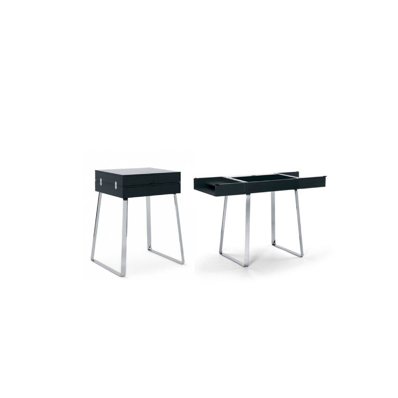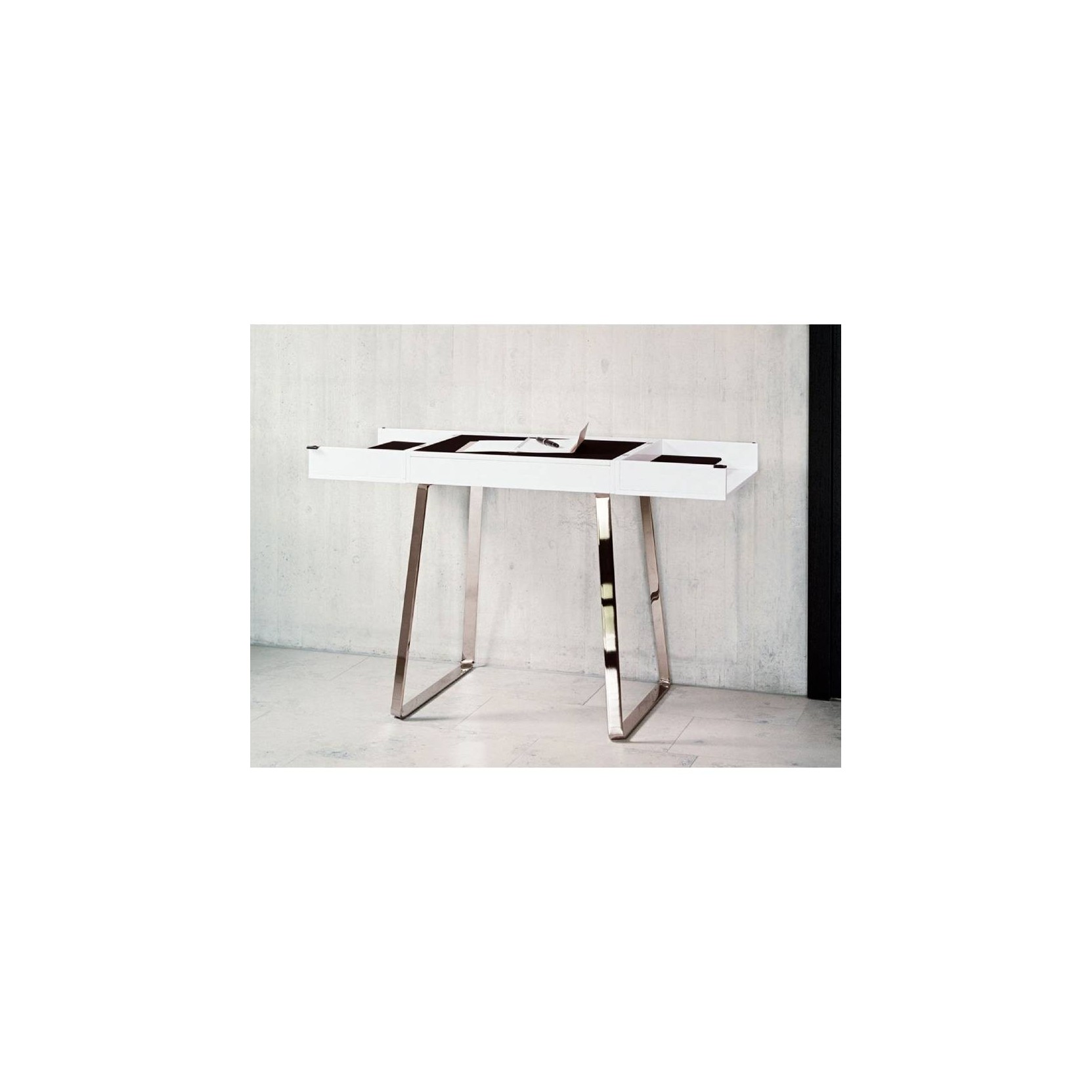 Zelos opens and closes with ease by offering all the comfort of a desk and occupying minimal space in the bedroom, study or office. Extremely elegant in the details, such as the choice of the floor pad in black leather, side compartments, drawers and storage space with cable outlet. A solution of great design signed Classicon.