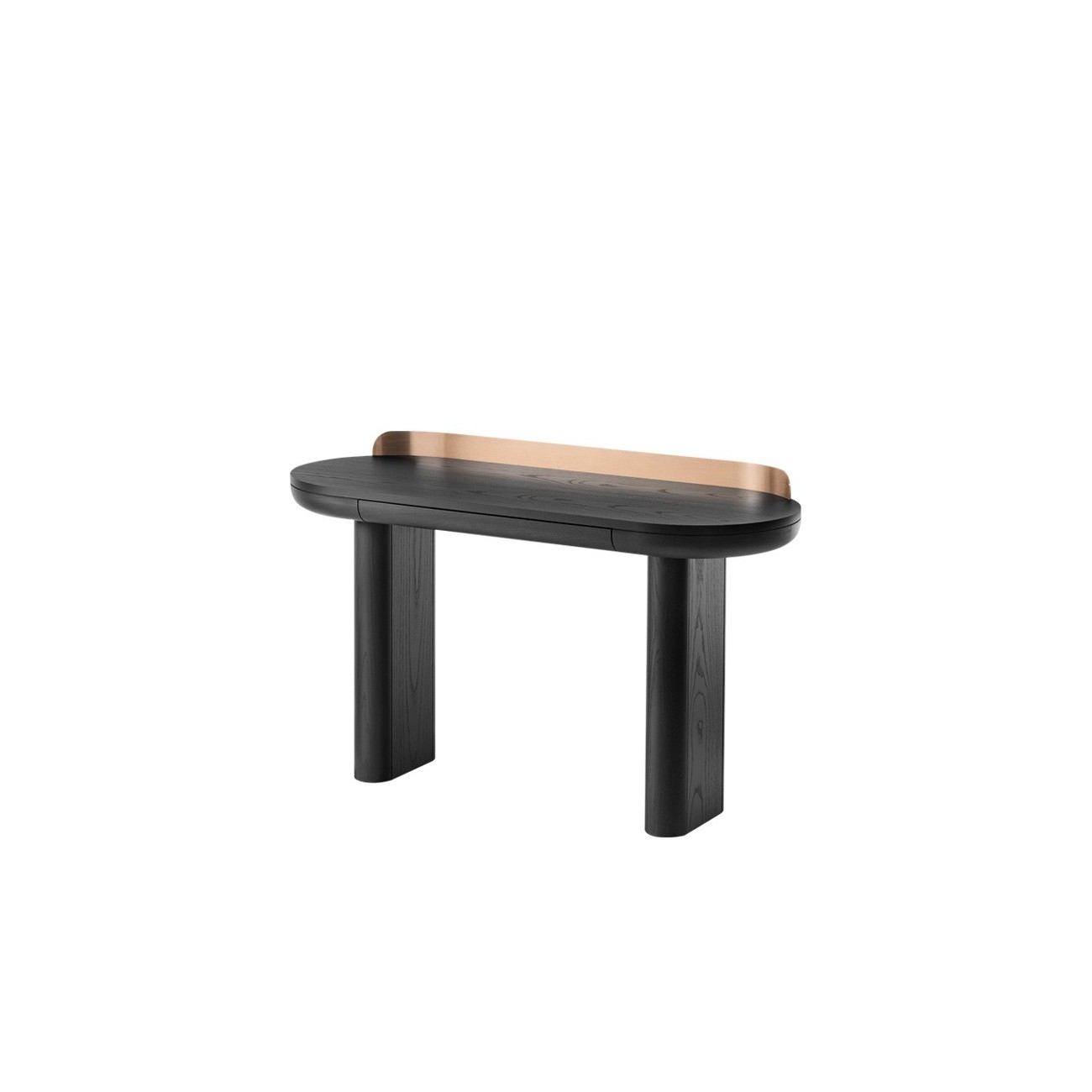 Jumbo is a solid looking writing desk designed to meet the challenges of the home office or limited space of bedrooms. A band of metal embraces the top, embellishing its volume. Jumbo also features a small drawer to please treasure hoarders.