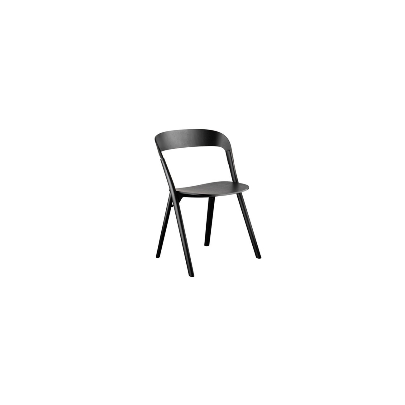Stacking chair. Material: seat and back in ash plywood, natural or painted or in natural oak plywood; legs in solid ash, natural or painted or in natural solid oak; joining element in sanded or painted die-cast aluminium.