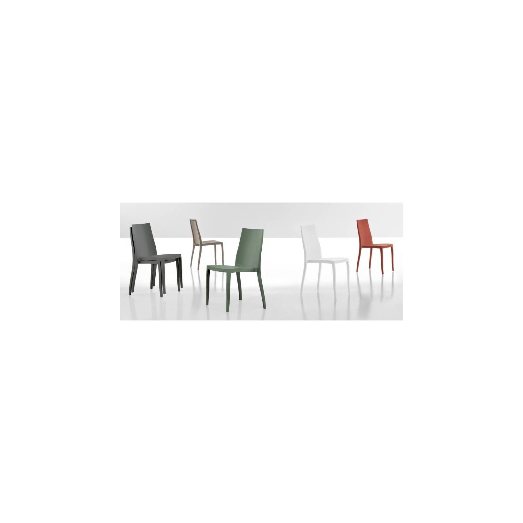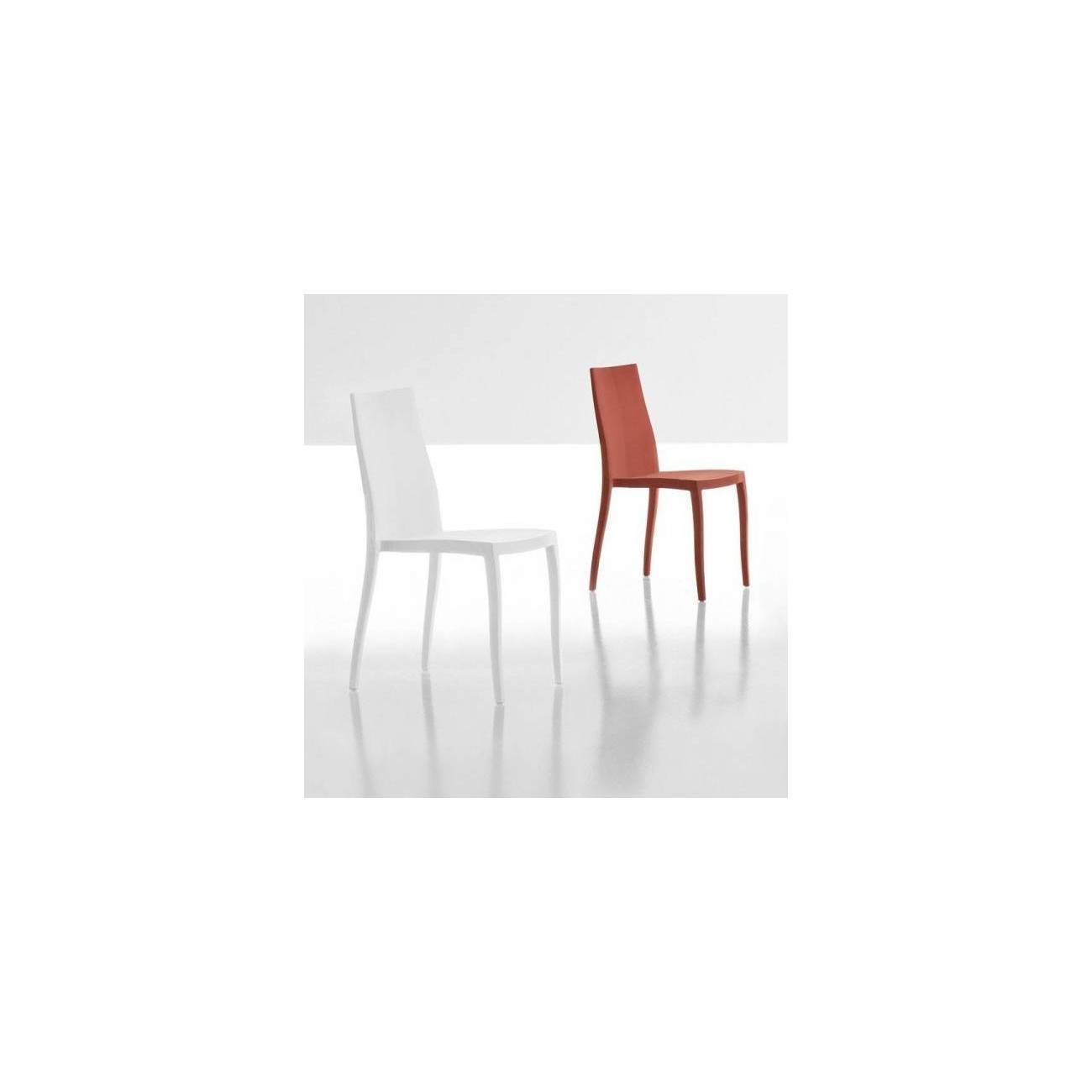 Chair frame in polypropylene gas-assisted injection moulding in colors white, anthracite grey, dove grey, brick red, olive green.