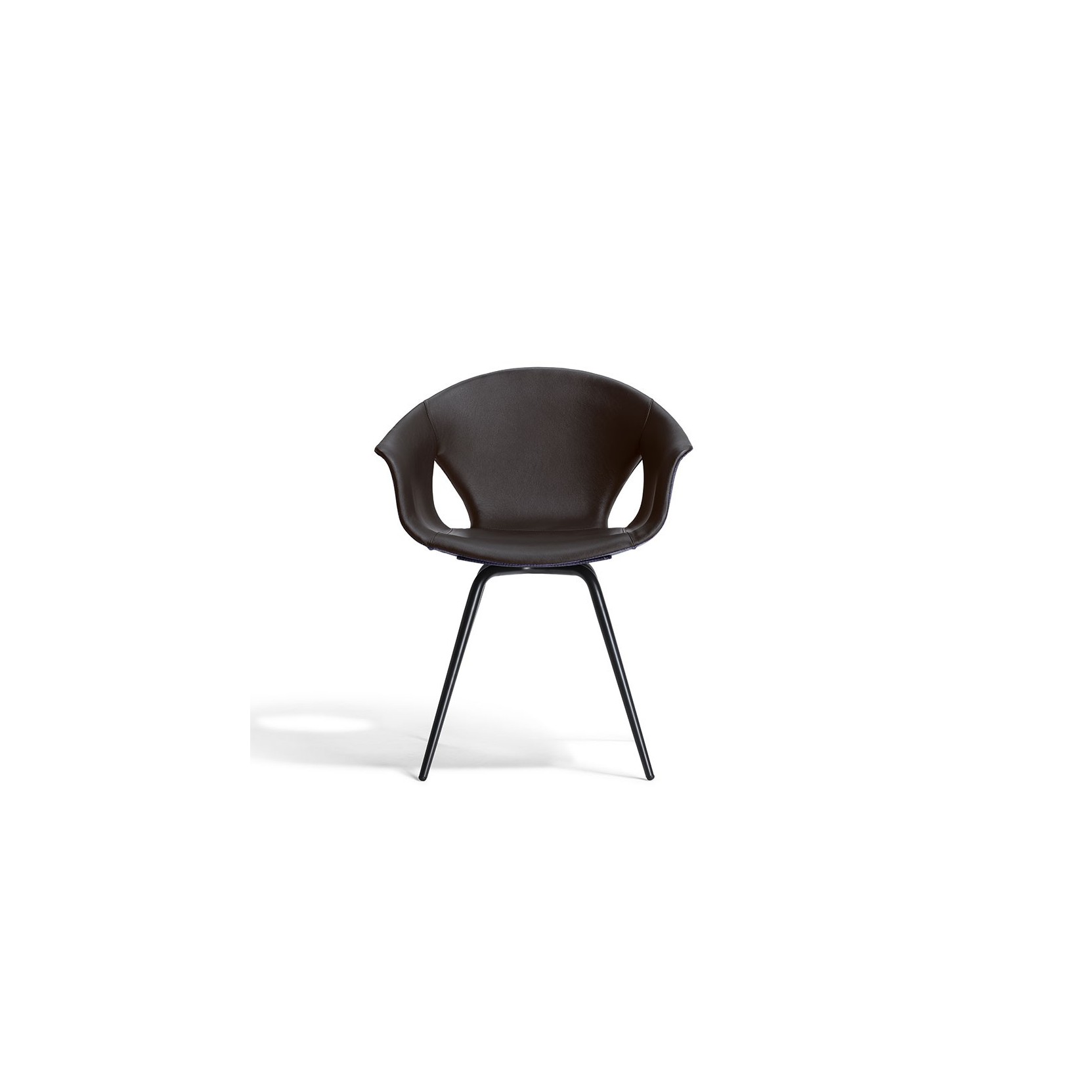 Ginger Ale is a versatile and modern seating solution, available in numerous configurations that combine different base types with painted or fully upholstered shells in leather or fabric. The shell, made from a composite thermoplastic polymer, comes in several finishes: Cemento, Antracite, entirely upholstered in Pelle Frau® leather, or in Kvadrat by Poltrona Frau fabric. The polyurethane foam padding ensures comfort and support. The versions with a painted shell are internally upholstered in Pelle Frau® leather, available in ColorSphere® (SC) and Nest. The fully upholstered versions offer a wide range of upholstery options, including Pelle Frau® and Kvadrat by Poltrona Frau fabrics, with a two-tone option available for an additional cost. The undershell cover, made from thermoformed ABS, can be upholstered in leather or fabric, or left in embossed black ABS, depending on preferences. The base can be made of wood, featuring 4 triangular-section ash legs in a range of finishes, or painted steel, with various base options including a 4-leg base, 4-spoke base, column base (fixed or swivel), and 5-spoke base with castors, adjustable or fixed. This armchair is designed to offer elegance and comfort in a variety of settings, such as workspaces, public areas, or home study zones.