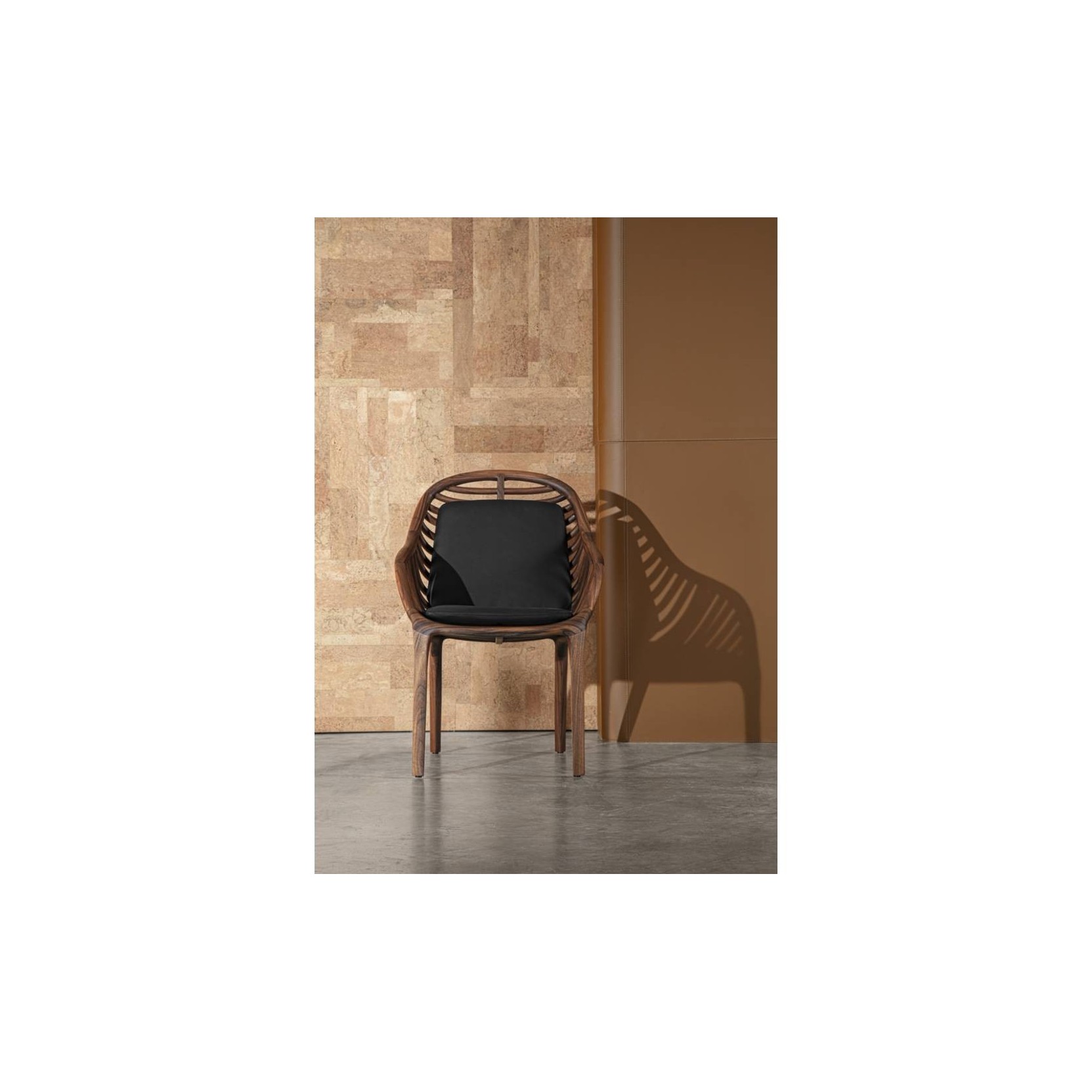 Chair expertly turned by our master cabinetmakers: a true masterpiece. Entirely hand-made. Where has our inspiration come from? From nature and the observation of the palm leaves, from which it takes shape and defines its back and session. Pam is an ambitious product that aims to become a desire object, protagonist of luxury interiors which will leave you breathless.