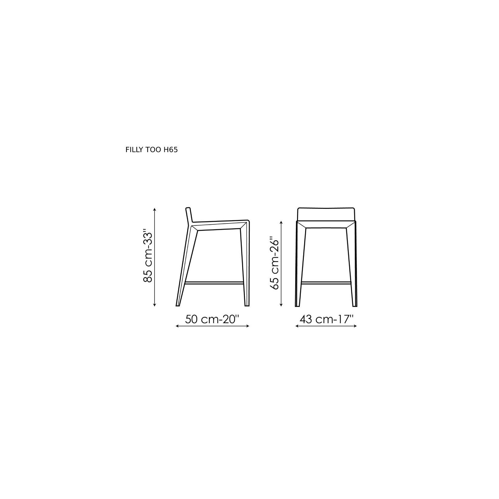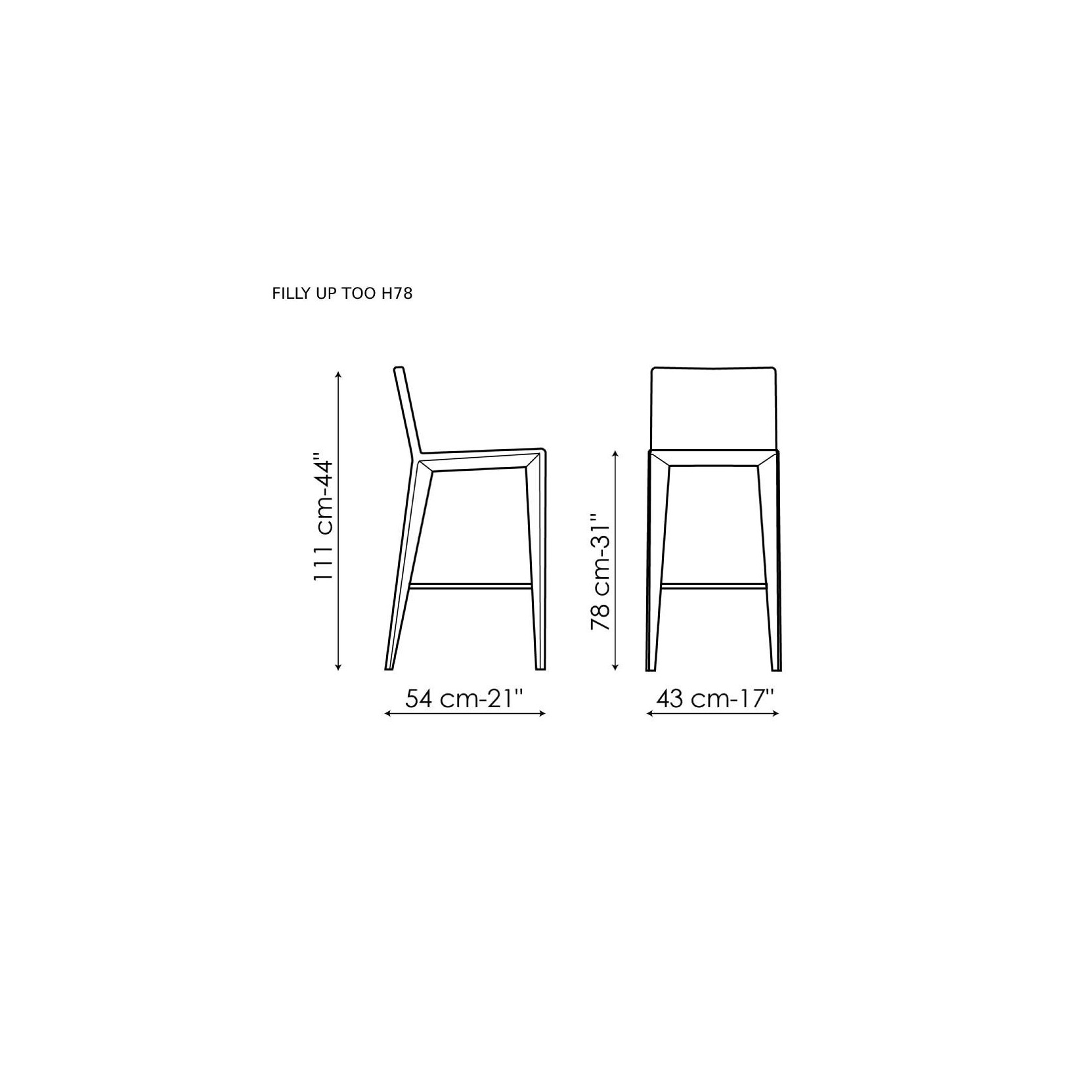 Available in three different sizes and in variants with low backrest (Filly too) or high backrest (Filly up too), it is a stool that can meet the needs of functionality and comfort even of the most demanding people. In the version upholstered entirely in fabric, leather, eco-leather or emery leather, it shows a more understated face; instead, it reveals a more dynamic look in the variant with the original metal legs visible. The Filly collection, in addition to the stool, is expressed also in the following versions, for a functional and aesthetically consistent result: chair with a low backrest (Filly), with a higher backrest for increased comfort (Filly up) with a wider and more generous seat (Filly large), with a high backrest and large seat (Filly large up), or with armrests (Miss Filly and Miss Filly up). In this way, it is possible choose the model that best suits individual needs without giving up the unmistakable style of Filly.