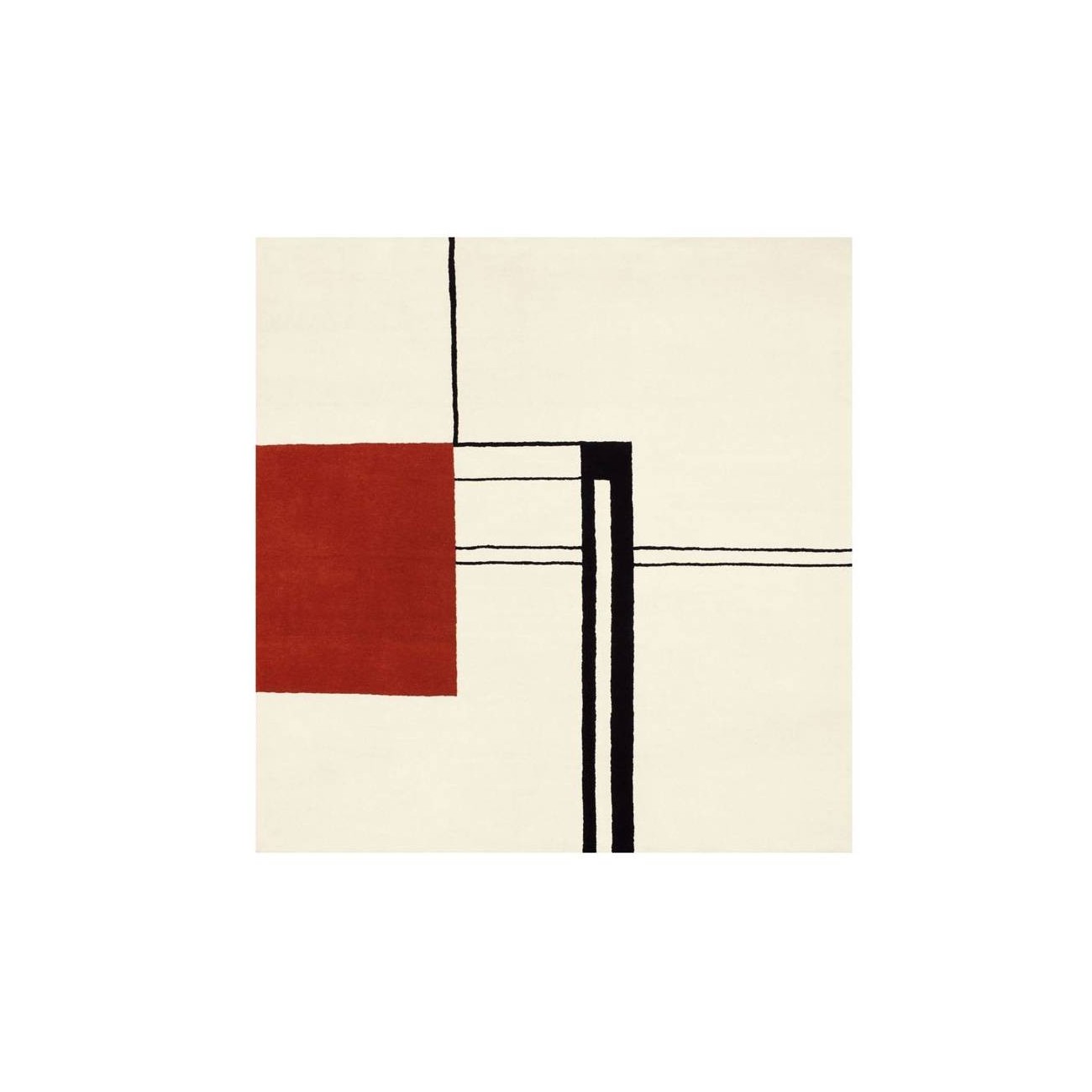 Wendingen is a rug in 100% pure new wool, from the original design by Eileen Gray, year 1926-1935, released today by the brand Classicon. Colored with natural vegetable dyes and hand-knotted with 80 knots per square inch (12.5 cm²), has a simple design and modern, perfect in every environment. One of the icons of international design more innovative and unconventional spent the century, is certainly Eileen Gray. Classicon allows us today to enjoy its design reinventing his works and drawings most important. Kilkenny is a masterpiece in wool, which, with shades of cream, black and red, goes back to the basic geometry of modernism.