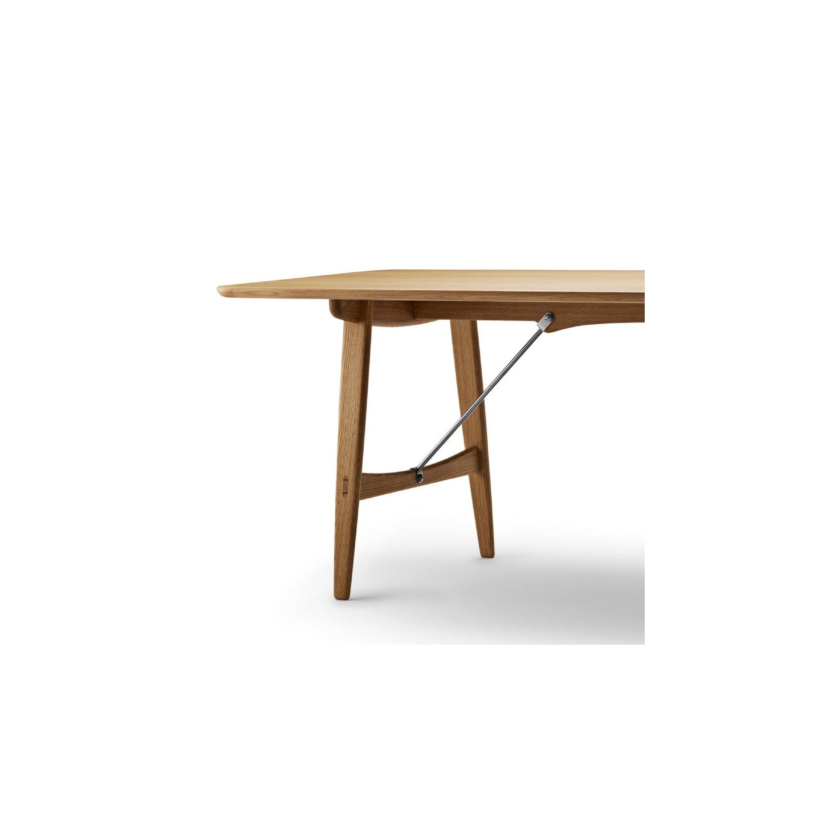 Carl Hansen & Søn presents the elegant hunting table created by the Danish designer in 1950. Originally designed for a male setting, Børge Mogensen's table now adapts to any space, be it modern or classic. The hunting table, with the model number BM1160, is available in oak, walnut and a combination of these types of wood, with various finishes. The diagonal brace bars are available in either stainless steel or brass.