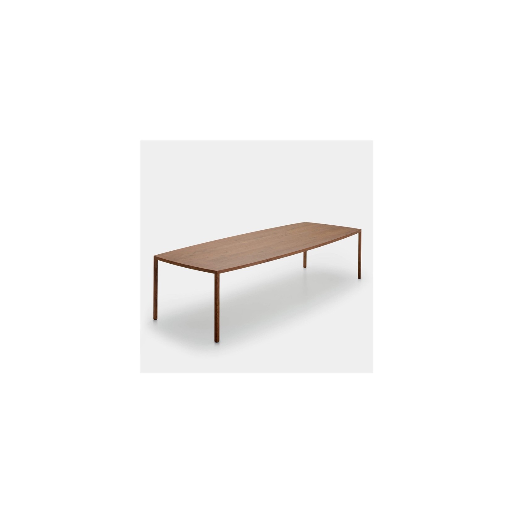 The Tense table collection owes its fortune to minimal design, minimal thickness and great attention to the materials chosen that make it versatile and elegant, rigorous and contemporary. Tense Curve offers a new way to experience the table, without straight lines, thus inviting diners to take advantage of more space available. Currently available in the finishes in white resin, reconstructed stone and marble, diamond red, oak and carbonized wood, it is perfect in living as in contract environments.