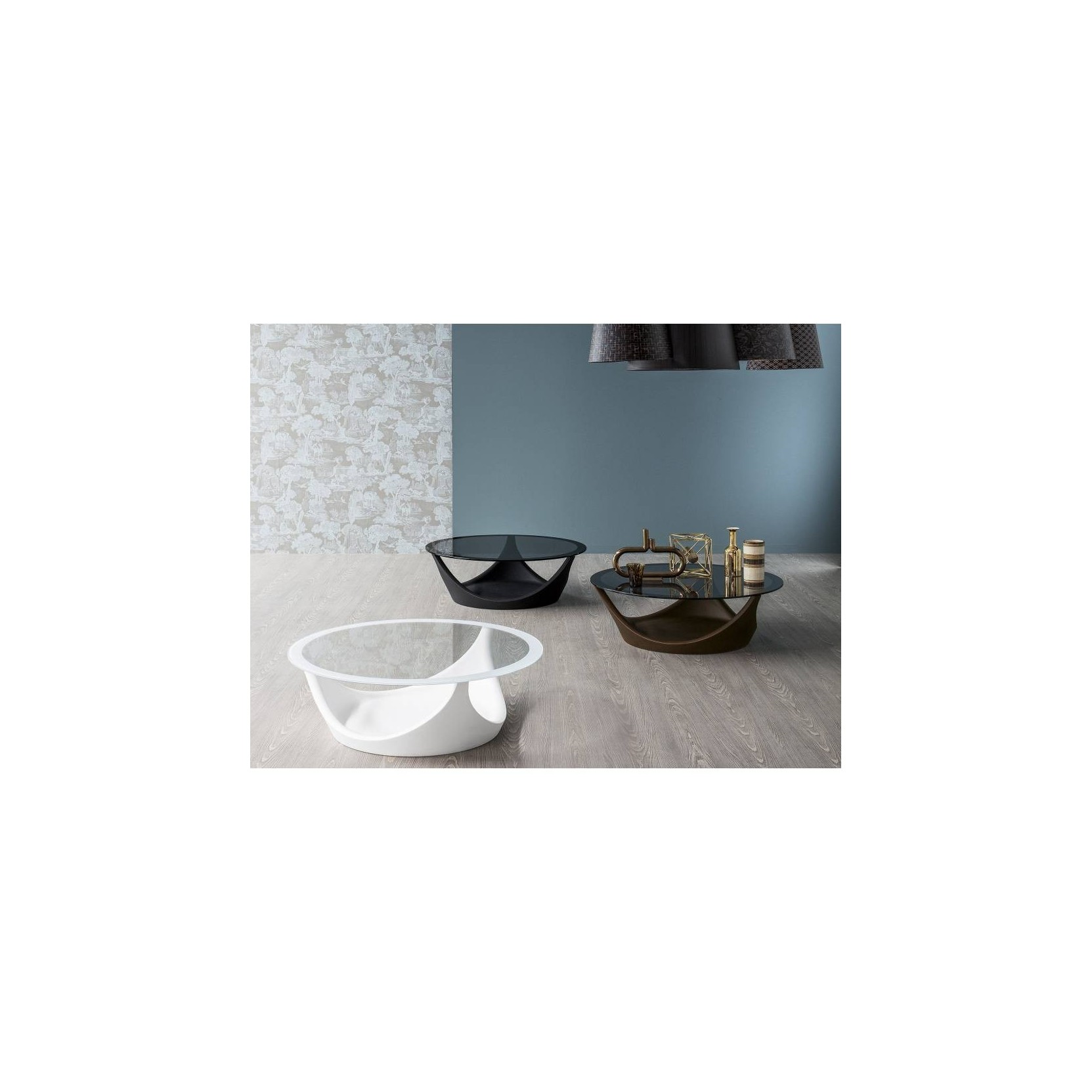 Arvo is a specimen stage made of plastic with glass top and handy storage compartment everything. In Finnish Arvo means 'value', a name very important for a modern coffee table, wraparound, characterized by three arms that support the glass top, available in black or extra clear smoked.