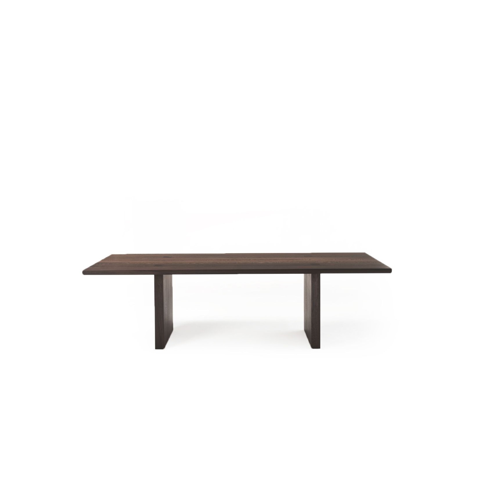 Table made entirely of solid wood with top having glued boards, with central gap and joining with the legs visible on the top surface. Available with top profile: rounded or straight. Finish: base of oil / natural wax of vegetable origin with pine extracts.