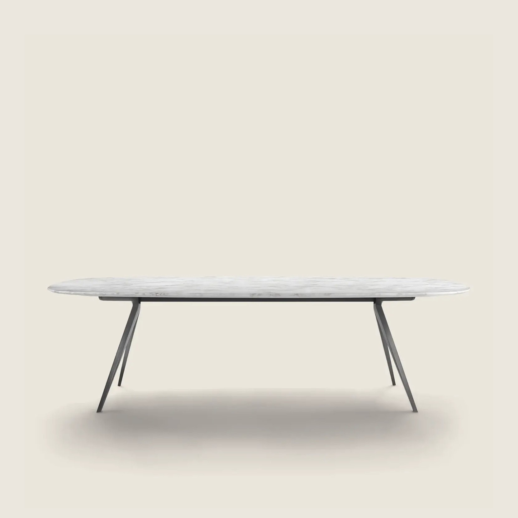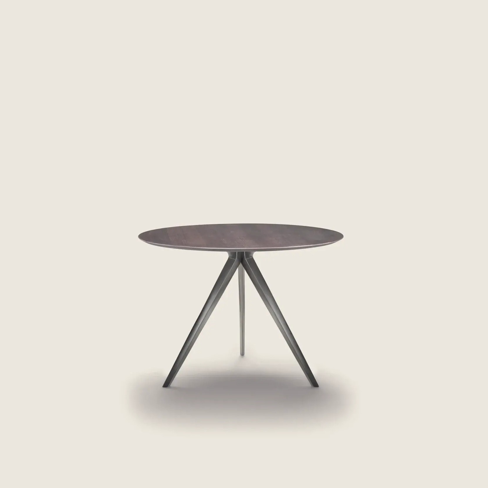 Offered in a generous array of sizes and shapes – round, square, oval, and rectangular – it meets the needs of both residential and hospitality settings. The slim die-cast aluminum legs lend the design an airy sense of refinement and are available in a curated selection of finishes, including satin, chrome, burnished, black chrome, polished anthracite, titanium finish 710, white 100, and black 900. The tabletop comes in wood veneer, available in a broad variety of finishes and wood types, or in lacquer in an array of modern shades. For those seeking refined, natural materials, Zefiro also offers a selection of glossy or matte marble tops including Carrara, Calacatta Oro, Emperador, Marquinia, Stardust Grey, and Marron Damasco. The table height is 73 cm with a wooden top and 74 cm with a marble top. Each table stands on thermoplastic feet, ensuring stability and floor protection.