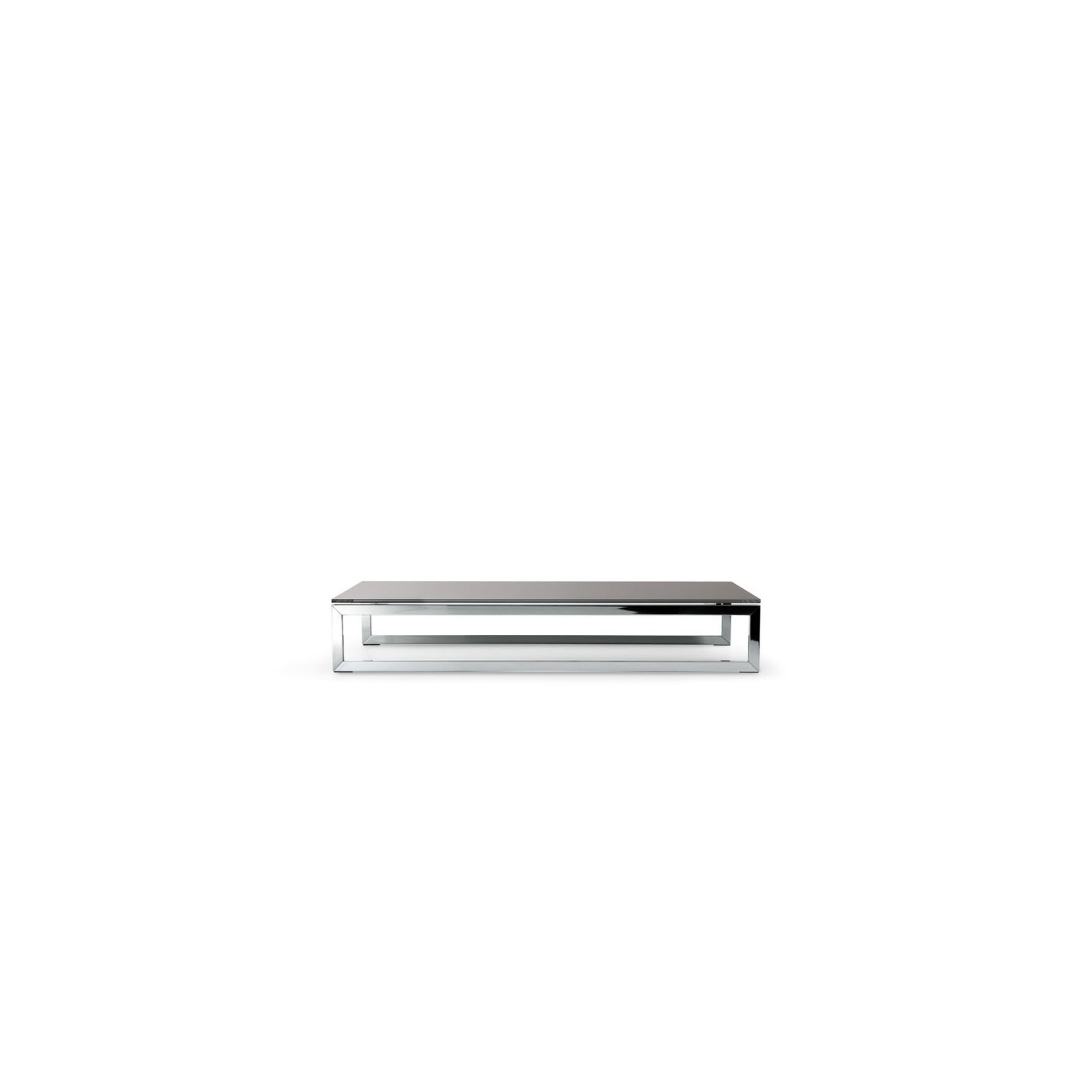 Coffee table with 12 mm transparent glass top. Painted glass as per samples, in the bright or satin version on request. Structure in bright stainless steel. Available also in satin stainless steel.