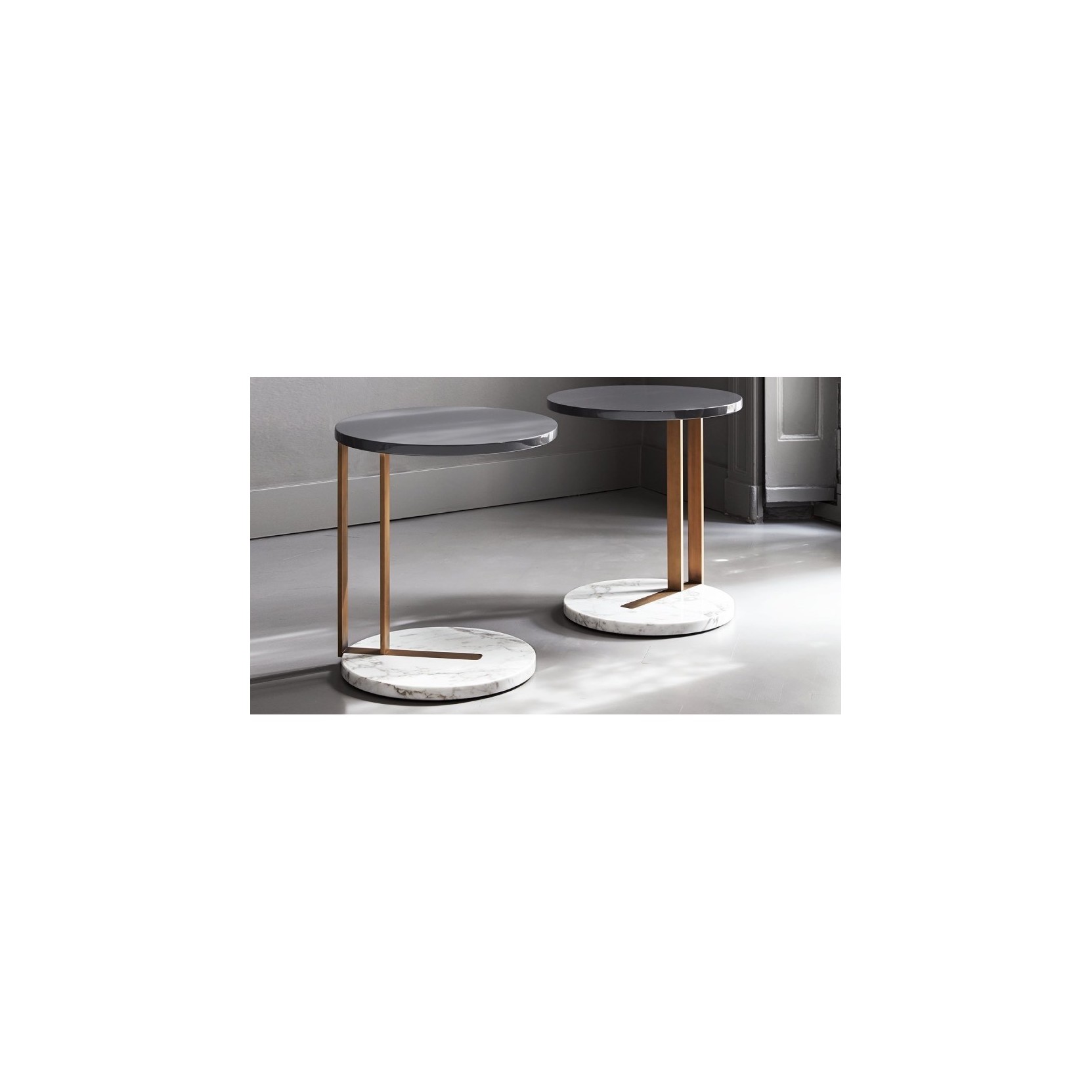 Side table with marble base available in various finishes and top in lacquered wood or bronzed mirror. Metal frame with a bronzed brass or matt black varnish. Lacquer is available either in a glossy or matt finish.