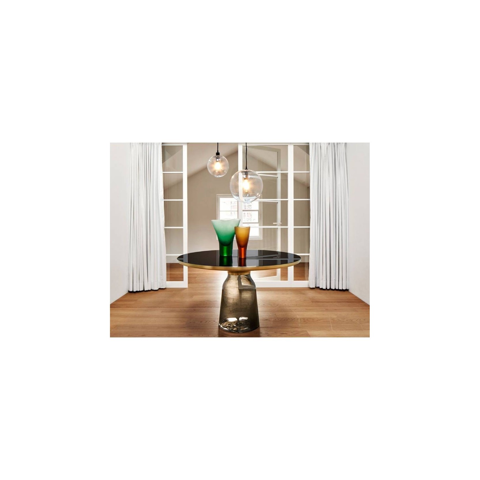 The glass of the base in its smoke grey shade, thanks to the brass support, skilfully joins the top in black crystal or Nero Marquina marble, thus creating a sculpture to be exhibited in your living room or to be inserted as a complement in a large hall. Each table is handmade, so small bubbles or irregularities in the glass are a feature and not a defect. Glass, by its nature a fragile material, in this case provides a solid support as a base, while the metallic volume, despite its heaviness, seems to float. Sebastian Herkner has received several awards for his projects, such as the German Design Award 2011 in the category Newcomer. The Bell Table, winner of a Red Dot Design Award, is the first project to be produced by ClassiCon Herkner.