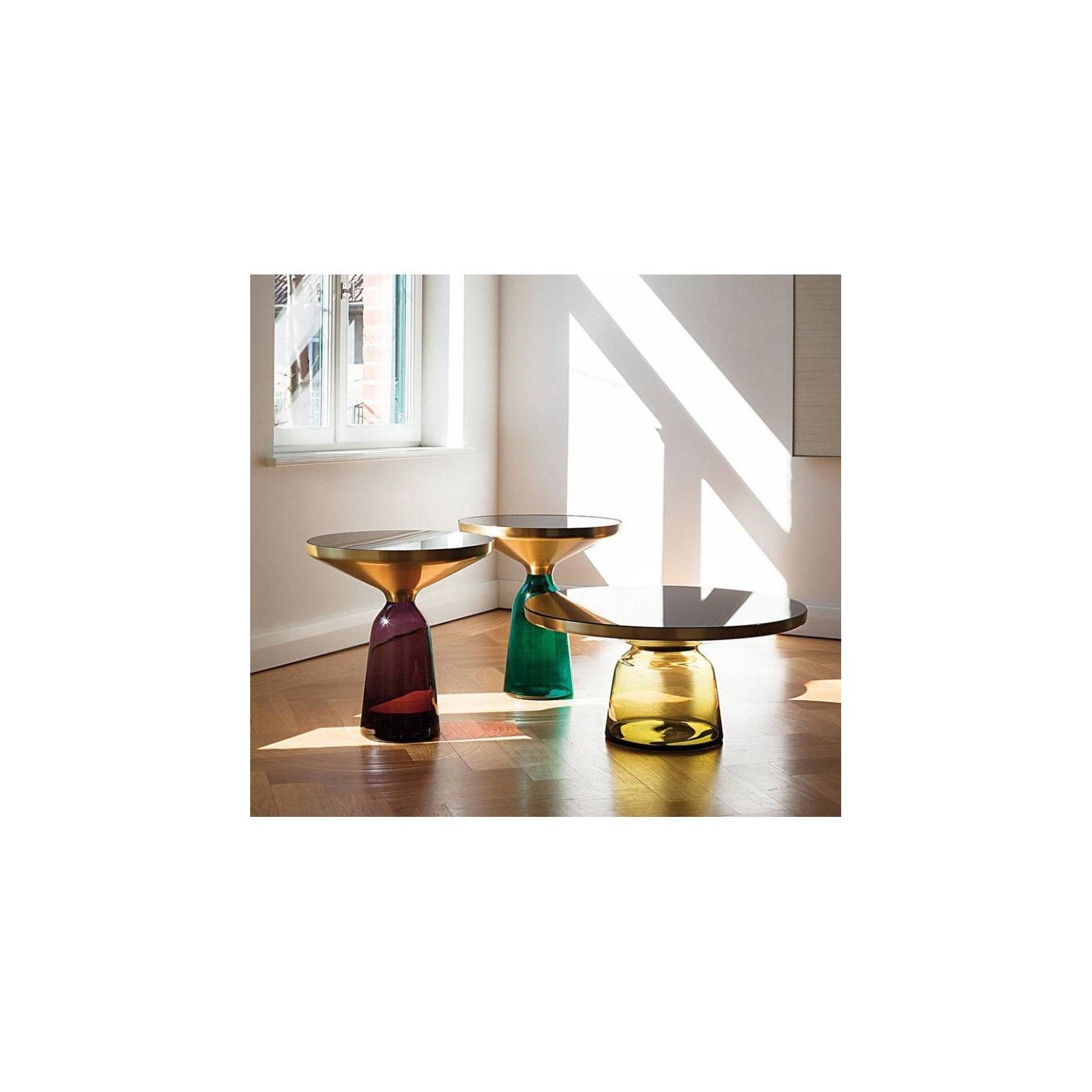 The stained glass and the upper frame in metal with round Crystal Bell Table make a small sculpture , a precious stone for your living room. Available now in version charming solid brass, its sinuous line resembles that of a bell. The items in the collection Bell count tables , coffee tables and lighting, and are true masterpieces of traditional crafts man ; Each is made by hand , so the small bubbles or irregularities in the glass are a feature and not a defect. The young designer Sebastian Herkner has received several awards for his projects , such as the German Design Award 2011 in the category Newcomer . The Bell " Table" , winner of a Red Dot Design Award , is the first project to be produced by ClassiCon Herkner .