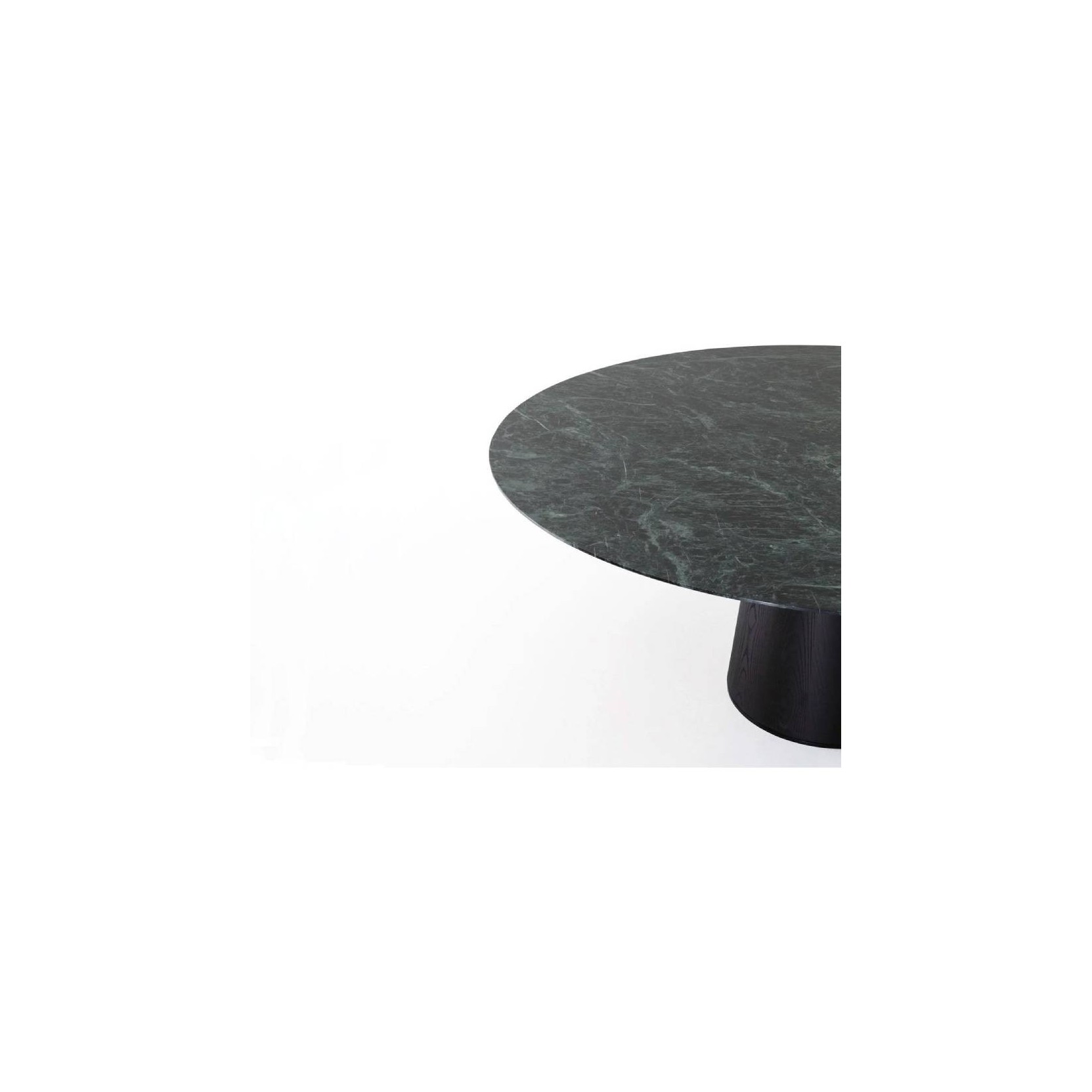 Finishings: here below the available mix between top and leg for every dimension. Diameter 160 cm: leg in sandblasted natural ash, dark-brown stained ash or black stained ash with top in all the marbles of the collection; leg in matt satin stainless steel or burnished brass with top in all the marbles and all the woods of the collection. Diameter 180 cm: leg in sandblasted natural ash, dark-brown stained ash or black stained ash with top in bianco Carrara, grey valentine, verde rameggiato, covelano fantastico, calacatta oro and paonazzo; leg in matt satin stainless steel or burnished brass with top in bianco Carrara, grey valentine, verde rameggiato, covelano fantastico, calacatta oro, paonazzo and in all the woods of the collection. Diameter 200 cm: leg in sandblasted natural ash, dark-brown stained ash or black stained ash with top in bianco Carrara, grey valentine, calacatta oro and paonazzo; leg in matt satin stainless steel or burnished brass with top in bianco Carrara, grey valentine, calacatta oro, paonazzo and in all the woods of the collection.