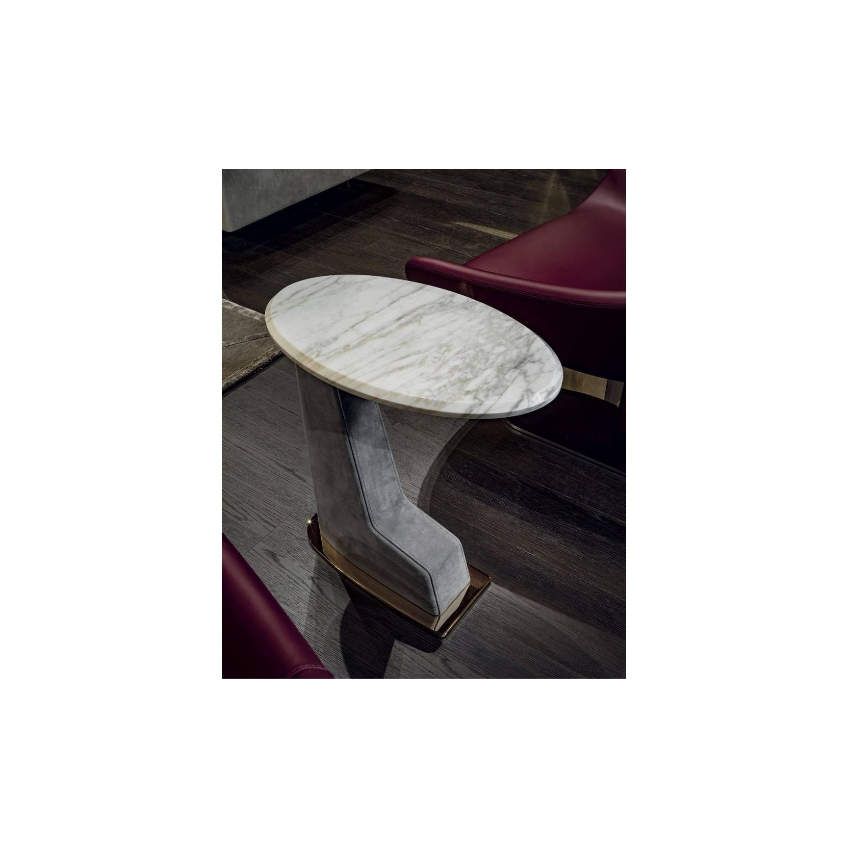 The structure comes in various types of wood, covered in medium/firm density polyurethane foam with soft Memory Foam cover on the whole piece. A metal ring decorates the base, available in the following finishes: bright light gold, matt Champagne gold, bright chrome, bright black chrome, matt satin bronze, bright pink gold, matt pink gold, Black Rose gold. Given the particular assembly of the product, the upholstery is not removable.