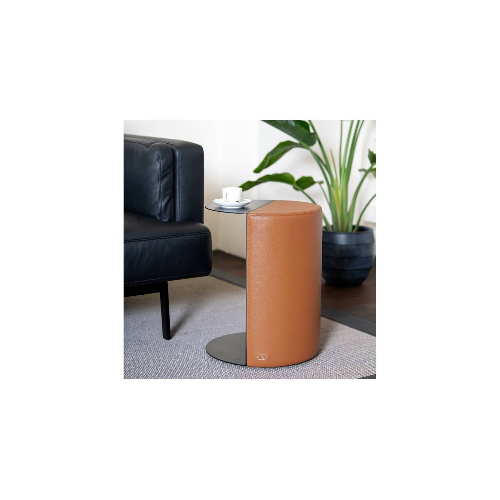 The DS-5250 round coffee table is made of leather and sheet metal. The metal used in the DS-5250 side table may seem heavy and rigid at first; with the contrast of the soft leather cover, however, this impression is relaxed and gains in aspirations of lightness. The folded metal sheeting creates the stability that the leather needs to embody a timeless side table as a symbiosis of metal and leather.