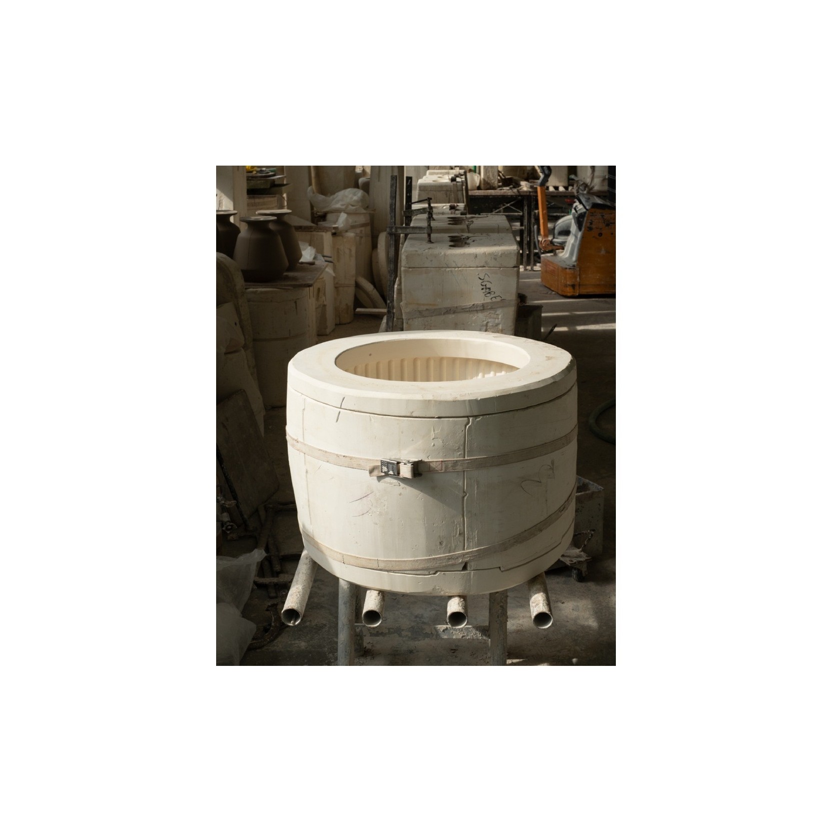 Kolos is formed in a plaster mould in a pottery where craftsmen apply the glaze and then fire the table. Although shiny and polished to the touch, the material it is made of is evident. The corners absorb less colour and become paler while the pigments are concentrated in the rounded areas, making them darker. Kolos therefore forms a highly decorative side table, combining its function as a furnishing accessory with an artistic value to form a showpiece. Its eccentric aesthetic represents an ironic interpretation of the architecture of the Colosseum.
