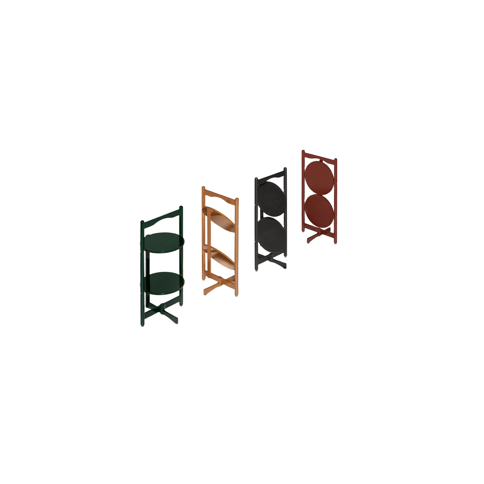 Florian, crafted by Vico Magistretti for Acerbis in 1989, features a solid wood load-bearing structure with overlapping foldable tops supported by natural brushed brass hinges and pins, in compact 39x39 cm footprint and 84 cm height, offered in multiple finishes for warm tactile appeal. Embodying the designer's minimalist ethos, it turns practicality into an iconic piece suited for living rooms, bedrooms, or study nooks, where its collapsible nature delivers ingenious space-saving without aesthetic compromise.