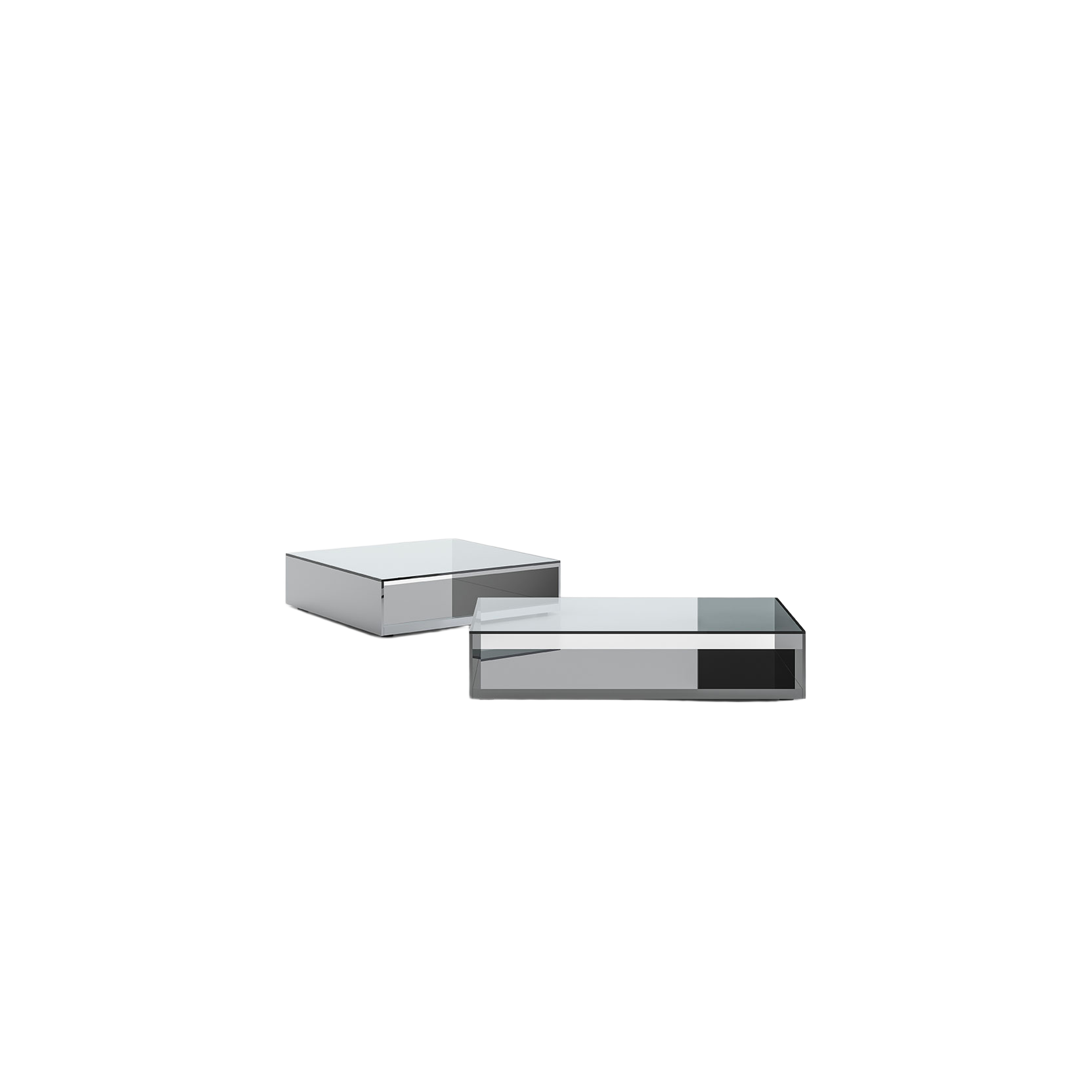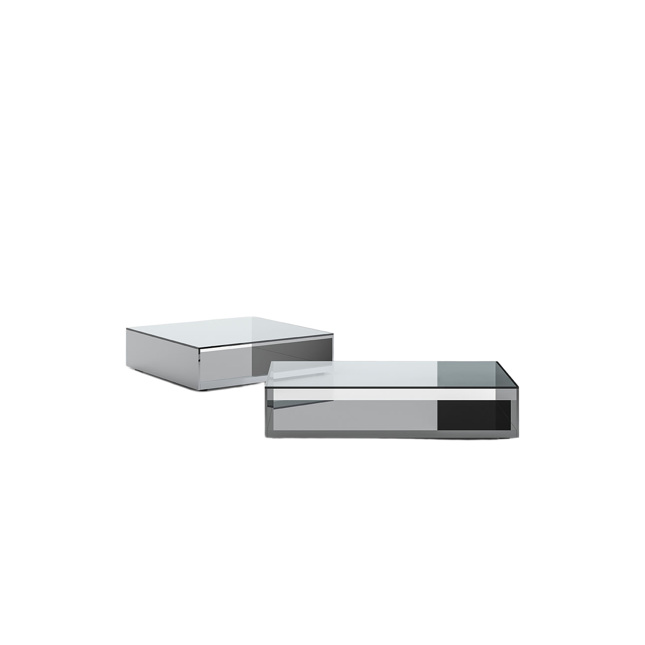 The Litt tables, designed by Gabriele and Oscar Buratti in 2002, combine elegance and refinement through the use of polished stainless steel and clear glass, creating a captivating interplay of reflections and transparency.