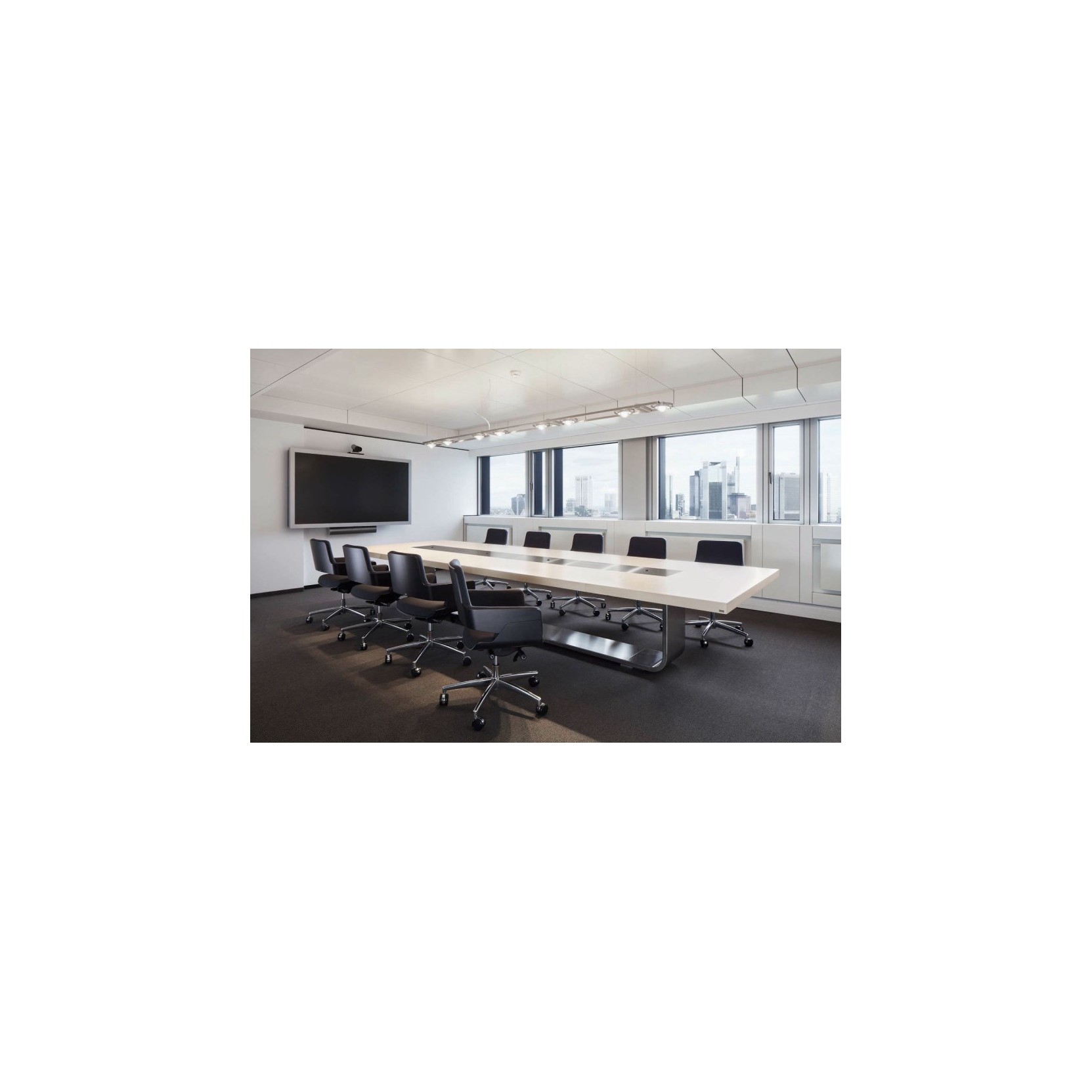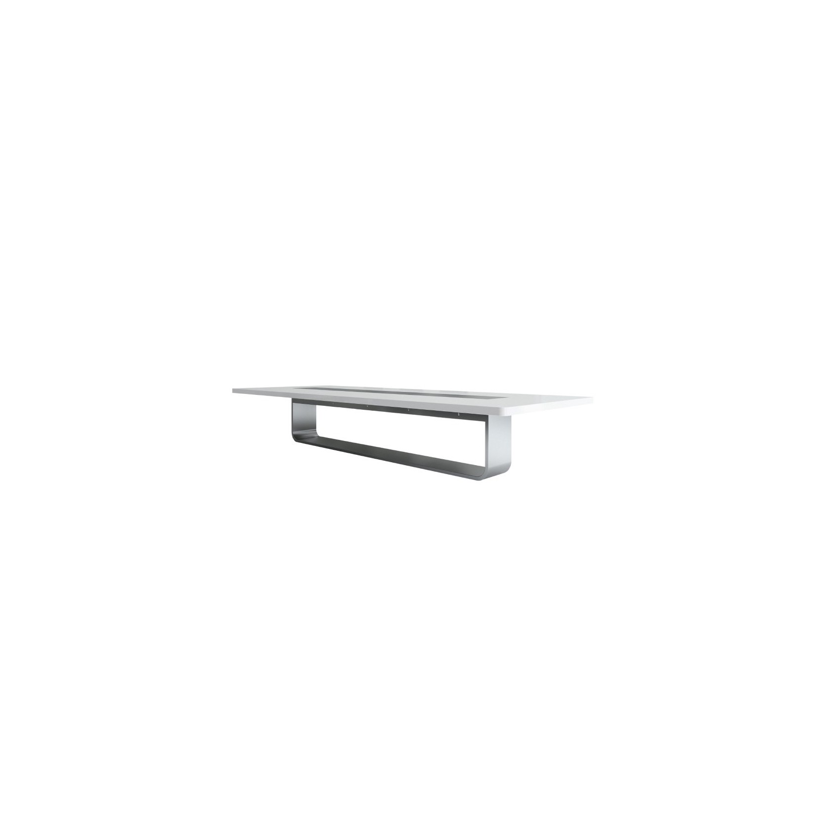 S 8000 is a large collection of tables of various sizes and shapes, designed specifically for the conference; the elegant metal base flows Like a ribbon the elegant metal base bracket continues on the surface of the tabletop where it becomes a functional surface - the central element. Multimedia module and beamer can be individually integrated. Cables are run invisibly in the supporting base structure. The design of the S8000 family combines high functionality with perfected quality and visual lightness.
