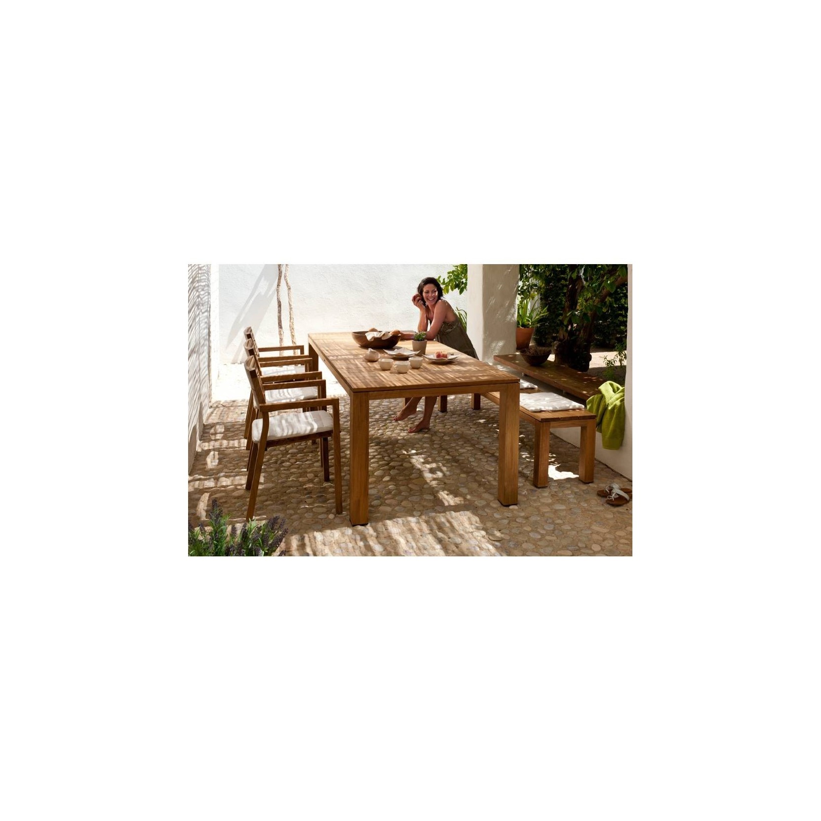 The combination of the broad slats and the pure but powerful design, reinvents teak in a modern, robust way. The Kos table is available in various sizes and complements different chairs. Tribù uses only the very best Javanese plantation wood for its teak outdoor furniture. Its quality is locally controlled by subsidiary Tribù Asia.